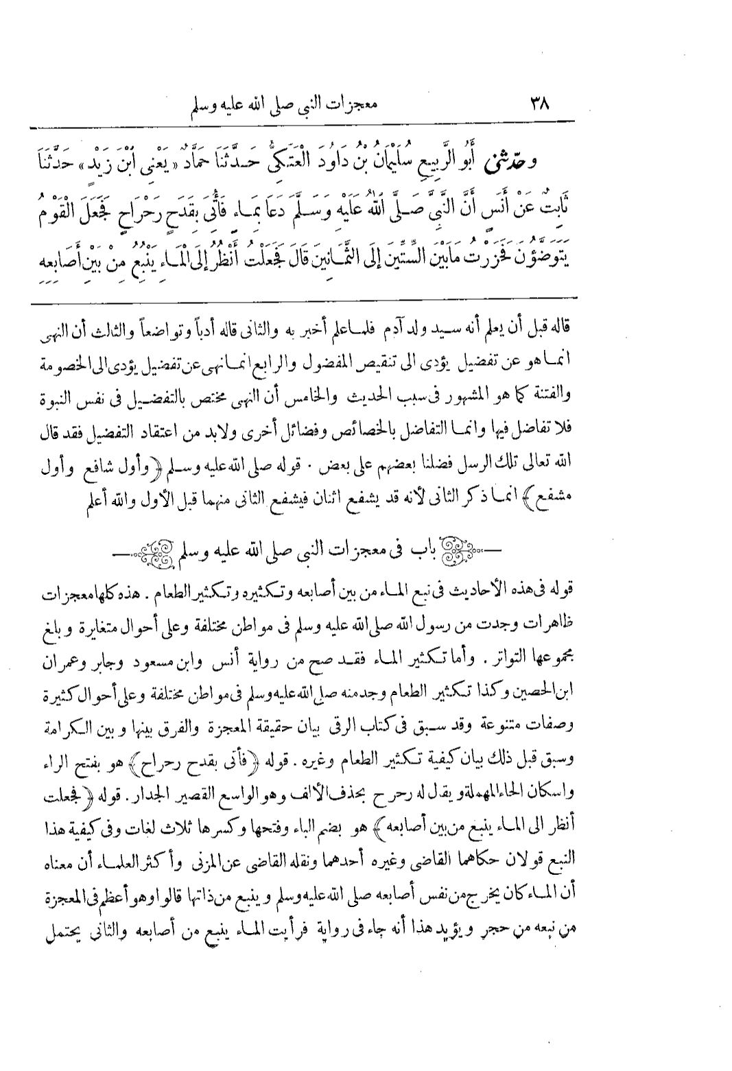 قَوْلُهُ فِي هَذِهِ الْأَحَادِيثِ فِي نَبْعِ الْمَاءِ مِنْ بَيْنِ أَصَابِعِهِ وَتَكْثِيرِهِ وَتَكْثِيرِ الطَّعَامِ هَذِهِ كُلُّهَا مُعْجِزَاتٌ ظَاهِرَاتٌ وُجِدَتْ مِنْ رَسُولِ اللَّهِ صَلَّى اللَّهُ عَلَيْهِ وَسَلَّمَ فِي مَوَاطِنَ مُخْتَلِفَةٍ وَعَلَى أَحْوَالٍ مُتَغَايِرَةٍ وَبَلَغَ مَجْمُوعُهَا التَّوَاتُرَ وَأَمَّا تَكْثِيرُ الْمَاءِ فَقَدْ صَحَّ من رواية أنس وبن مَسْعُودٍ وَجَابِرٍ وَعِمْرَانَ بْنِ الْحُصَيْنِ وَكَذَا تَكْثِيرُ الطَّعَامِ وُجِدَ مِنْهُ صَلَّى اللَّهُ عَلَيْهِ وَسَلَّمَ فِي مَوَاطِنَ مُخْتَلِفَةٍ وَعَلَى أَحْوَالٍ كَثِيرَةٍ وَصِفَاتٍ مُتَنَوِّعَةٍ وَقَدْ سَبَقَ فِي كِتَابِ الرُّقَى بَيَانُ حَقِيقَةِ الْمُعْجِزَةِ وَالْفَرْقِ بَيْنَهَا وَبَيْنَ الْكَرَامَةِ وَسَبَقَ قَبْلَ ذَلِكَ بَيَانُ كَيْفِيَّةِ تَكْثِيرِ الطَّعَامِ وَغَيْرِهِ قَوْلُهُ