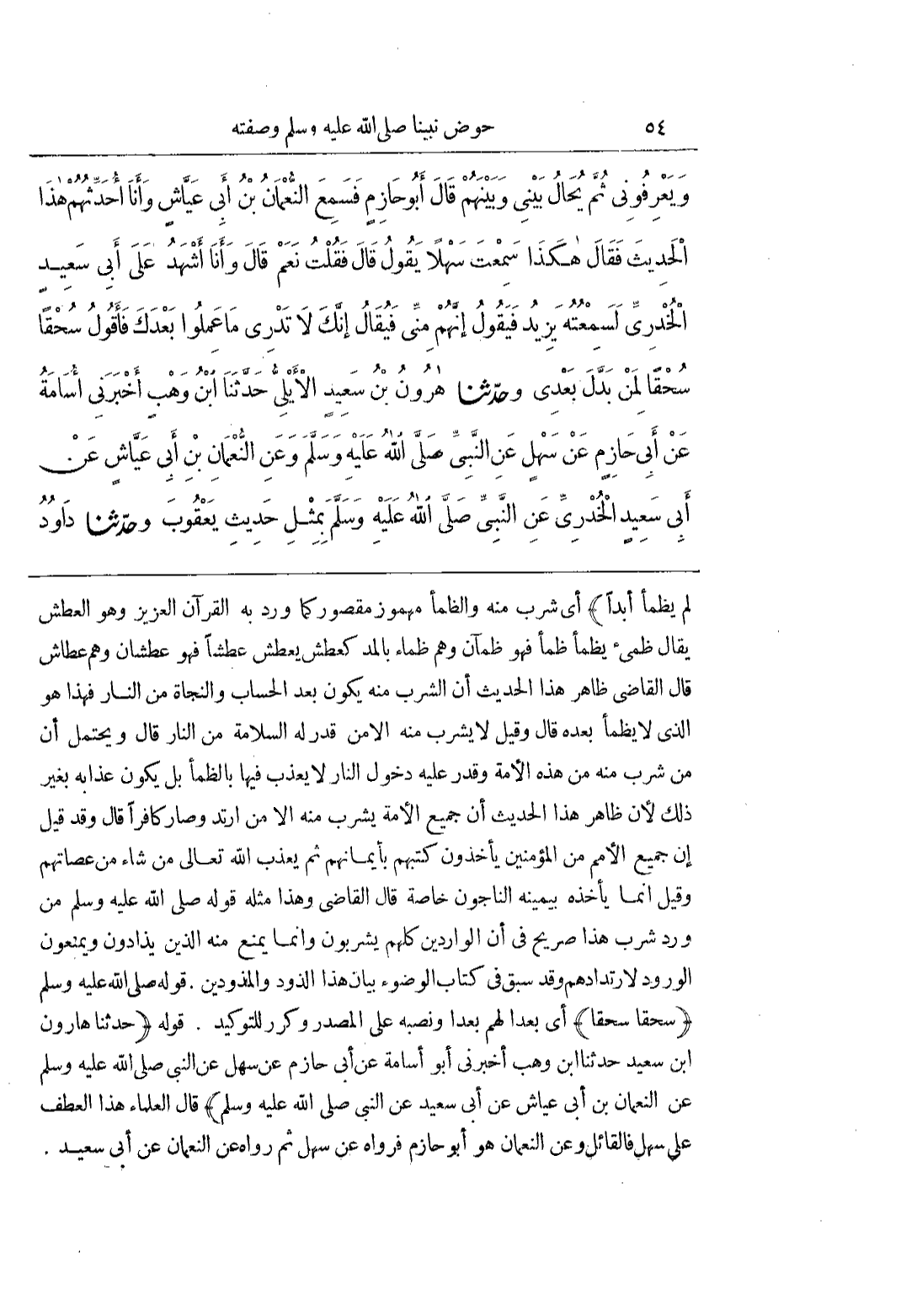[2291] (سُحْقًا سُحْقًا) أَيْ بُعْدًا لَهُمْ بُعْدًا وَنَصْبُهُ عَلَى الْمَصْدَرِ وَكَرَّرَ لِلتَّوْكِيدِ قوله (حدثنا هارون بن سعيد حدثنا بن وَهْبٍ أَخْبَرَنِي أَبُو أُسَامَةَ عَنْ أَبِي حَازِمٍ عَنْ سَهْلٍ عَنِ النَّبِيِّ صَلَّى اللَّهُ عَلَيْهِ وسلم عن النُّعْمَانُ بْنُ أَبِي عَيَّاشٍ عَنْ أَبِي سَعِيدٍ عَنِ النَّبِيِّ صَلَّى اللَّهُ عَلَيْهِ وَسَلَّمَ) قَالَ الْعُلَمَاءُ هَذَا الْعَطْفُ عَلَى سَهْلٍ فَالْقَائِلُ وَعَنِ النُّعْمَانِ هُوَ أَبُو حَازِمٍ فَرَوَاهُ عَنْ سَهْلٍ ثُمَّ رَوَاهُ عَنِ النُّعْمَانِ عَنْ أَبِي سَعِيدٍ