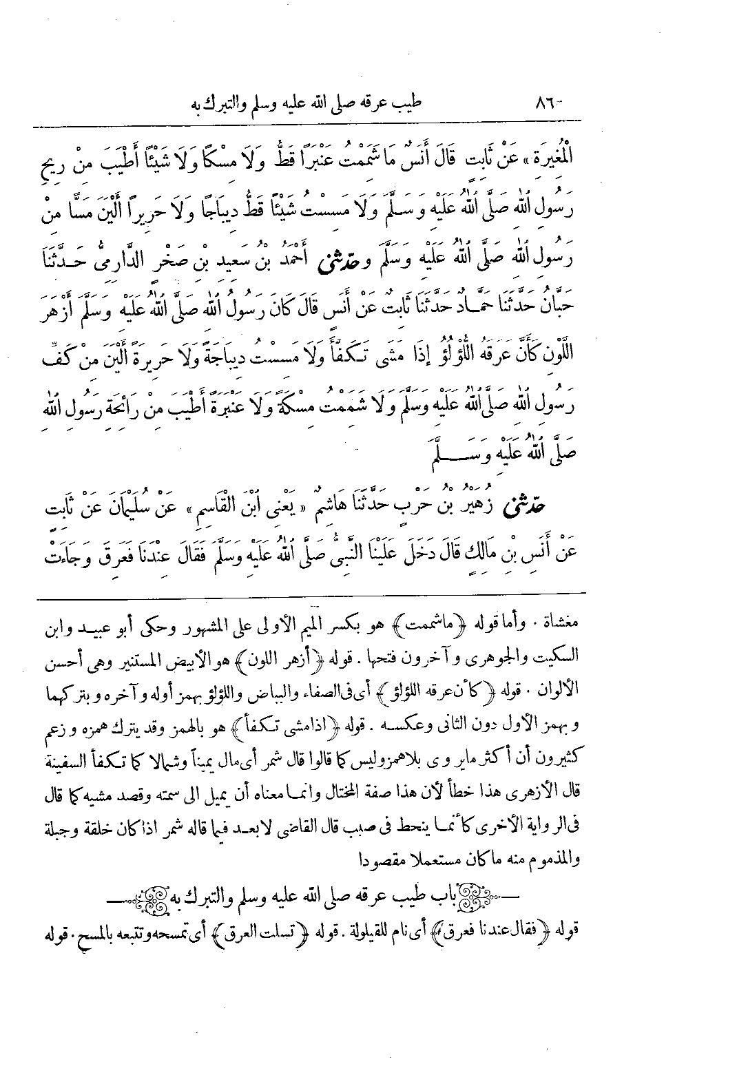(بَاب طيب عرقه صَلَّى اللَّهُ عَلَيْهِ وَسَلَّمَ وَالتَّبَرُّكِ بِهِ قَوْلُهُ