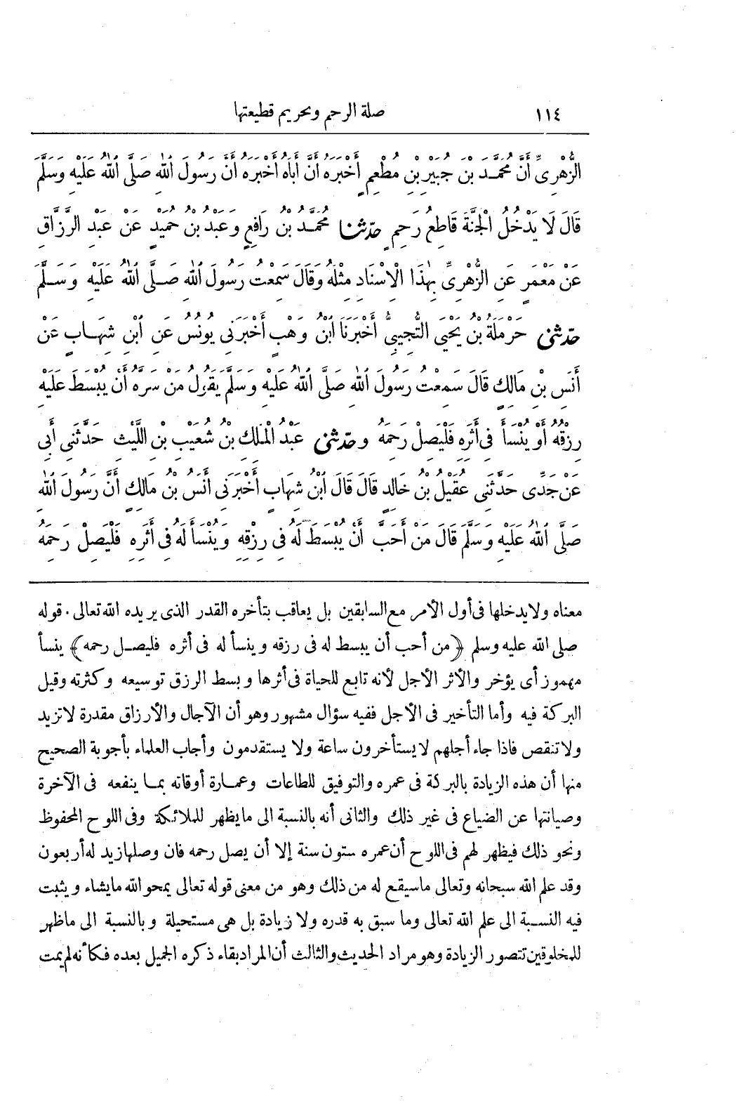 [2557] (مَنْ أَحَبَّ أَنْ يُبْسَطَ لَهُ فِي رِزْقِهِ وَيُنْسَأَ لَهُ فِي أَثَرِهِ فَلْيَصِلْ رَحِمَهُ) يُنْسَأَ مهموز أي يؤخر والاثر الاجل لانه تابع للحياة في أثرها وبسط الرِّزْقِ تَوْسِيعُهُ وَكَثْرَتُهُ وَقِيلَ الْبَرَكَةُ فِيهِ وَأَمَّا التَّأْخِيرُ فِي الْأَجَلِ فَفِيهِ سُؤَالٌ مَشْهُورٌ وَهُوَ أَنَّ الْآجَالَ وَالْأَرْزَاقَ مُقَدَّرَةٌ لَا تَزِيدُ وَلَا تَنْقُصُ فَإِذَا جَاءَ أَجَلُهُمْ لَا يَسْتَأْخِرُونَ سَاعَةً ولا يستقدمون وَأَجَابَ الْعُلَمَاءُ بِأَجْوِبَةٍ الصَّحِيحُ مِنْهَا أَنَّ هَذِهِ الزِّيَادَةَ بِالْبَرَكَةِ فِي عُمْرِهِ وَالتَّوْفِيقِ لِلطَّاعَاتِ وَعِمَارَةِ أَوْقَاتِهِ بِمَا يَنْفَعَهُ فِي الْآخِرَةِ وَصِيَانَتِهَا عَنِ الضَّيَاعِ فِي غَيْرِ ذَلِكَ وَالثَّانِي أَنَّهُ بِالنِّسْبَةِ إِلَى مَا يَظْهَرُ لِلْمَلَائِكَةِ وَفِي اللَّوْحِ الْمَحْفُوظِ وَنَحْوِ ذَلِكَ فَيَظْهَرُ لَهُمْ فِي اللَّوْحِ أَنَّ عُمْرُهُ سِتُّونَ سَنَةً إِلَّا أَنْ يَصِلَ رَحِمَهُ فَإِنْ وَصَلَهَا زِيدَ لَهُ أَرْبَعُونَ وَقَدْ عَلِمَ اللَّهُ سُبْحَانَهُ وَتَعَالَى مَا سَيَقَعُ لَهُ مِنْ ذَلِكَ وَهُوَ مِنْ مَعْنَى قَوْلِهِ تَعَالَى يَمْحُو الله ما يشاء ويثبت فيه النسبة إِلَى عِلْمِ اللَّهِ تَعَالَى وَمَا سَبَقَ بِهِ قدره ولا زِيَادَةَ بَلْ هِيَ مُسْتَحِيلَةٌ وَبِالنِّسْبَةِ إِلَى مَا ظَهَرَ لِلْمَخْلُوقِينَ تُتَصَوَّرُ الزِّيَادَةُ وَهُوَ مُرَادُ الْحَدِيثِ وَالثَّالِثُ أَنَّ الْمُرَادَ بَقَاءُ ذِكْرِهِ الْجَمِيلَ بَعْدَهُ فَكَأَنَّهُ لَمْ يَمُتْ