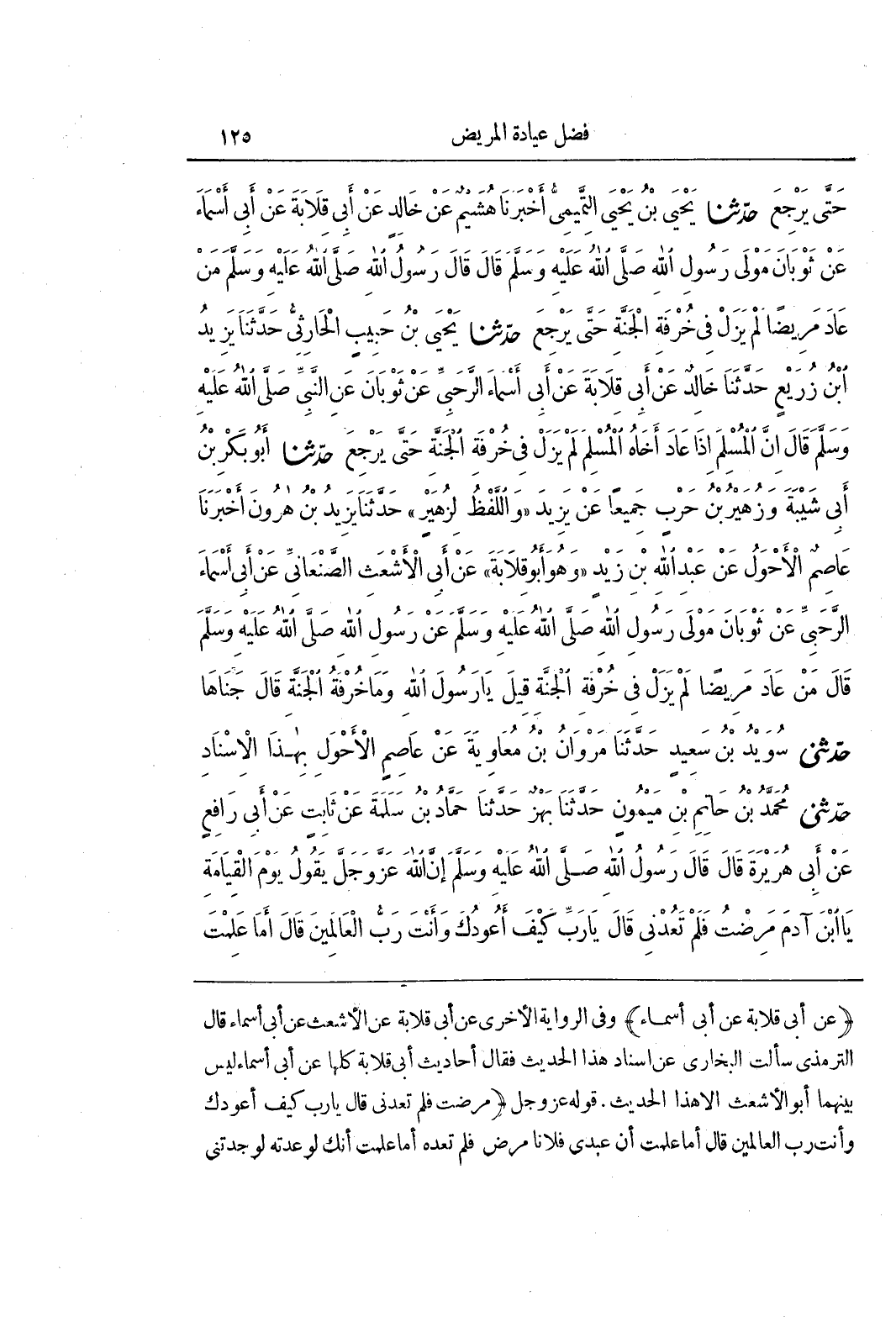 [2569] (مَرِضْتُ فَلَمْ تَعُدْنِي قَالَ يَا رَبُّ كَيْفَ أَعُودُكَ وَأَنْتَ رَبُّ الْعَالَمِينَ قَالَ أَمَا عَلِمْتَ أَنَّ عَبْدِيَ فُلَانًا مَرِضَ فَلَمْ تَعُدْهُ أَمَا عَلِمْتَ أَنَّكَ لَوْ عُدْتَهُ لَوَجَدْتنِي