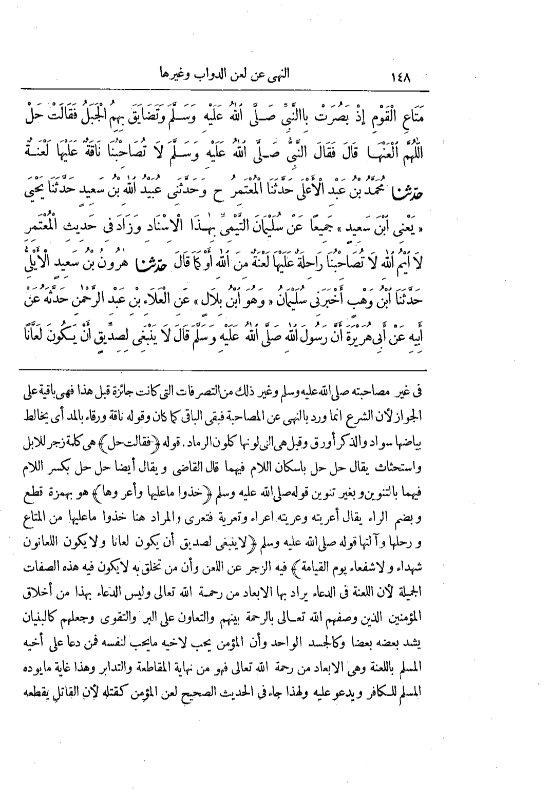 [2597] (لَا يَنْبَغِي لِصِدِّيقٍ أَنْ يَكُونَ لَعَّانًا وَلَا يَكُونَ اللَّعَّانُونَ شُهَدَاءَ وَلَا شُفَعَاءَ يَوْمَ الْقِيَامَةِ) فِيهِ الزَّجْرِ عَنِ اللَّعْنِ وَأَنَّ مَنْ تَخَلَّقَ بِهِ لَا يَكُونُ فِيهِ هَذِهِ الصِّفَاتِ الْجَمِيلَةِ لِأَنَّ اللَّعْنَةَ فِي الدُّعَاءِ يُرَادُ بِهَا الْإِبْعَادُ مِنْ رَحْمَةِ اللَّهِ تَعَالَى وَلَيْسَ الدُّعَاءُ بِهَذَا مِنْ أَخْلَاقِ الْمُؤْمِنِينَ الَّذِينَ وَصَفَهُمُ اللَّهُ تَعَالَى بِالرَّحْمَةِ بَيْنَهُمْ وَالتَّعَاوُنِ عَلَى الْبِرِّ وَالتَّقْوَى وَجَعَلَهُمْ كَالْبُنْيَانِ يَشُدُّ بَعْضُهُ بَعْضًا وَكَالْجَسَدِ الْوَاحِدِ وَأَنَّ الْمُؤْمِنَ يُحِبُّ لِأَخِيهِ مَا يُحِبُّ لِنَفْسِهِ فَمَنْ دَعَا عَلَى أَخِيهِ الْمُسْلِمِ بِاللَّعْنَةِ وَهِيَ الْإِبْعَادُ مِنْ رَحْمَةِ اللَّهِ تَعَالَى فَهُوَ مِنْ نِهَايَةِ الْمُقَاطَعَةِ وَالتَّدَابُرِ وَهَذَا غَايَةُ مَا يَوَدُّهُ الْمُسْلِمُ لِلْكَافِرِ وَيَدْعُو عَلَيْهِ وَلِهَذَا جَاءَ فِي الْحَدِيثِ الصَّحِيحِ لَعْنُ الْمُؤْمِنِ كَقَتْلِهِ لِأَنَّ القاتل يقطعه
