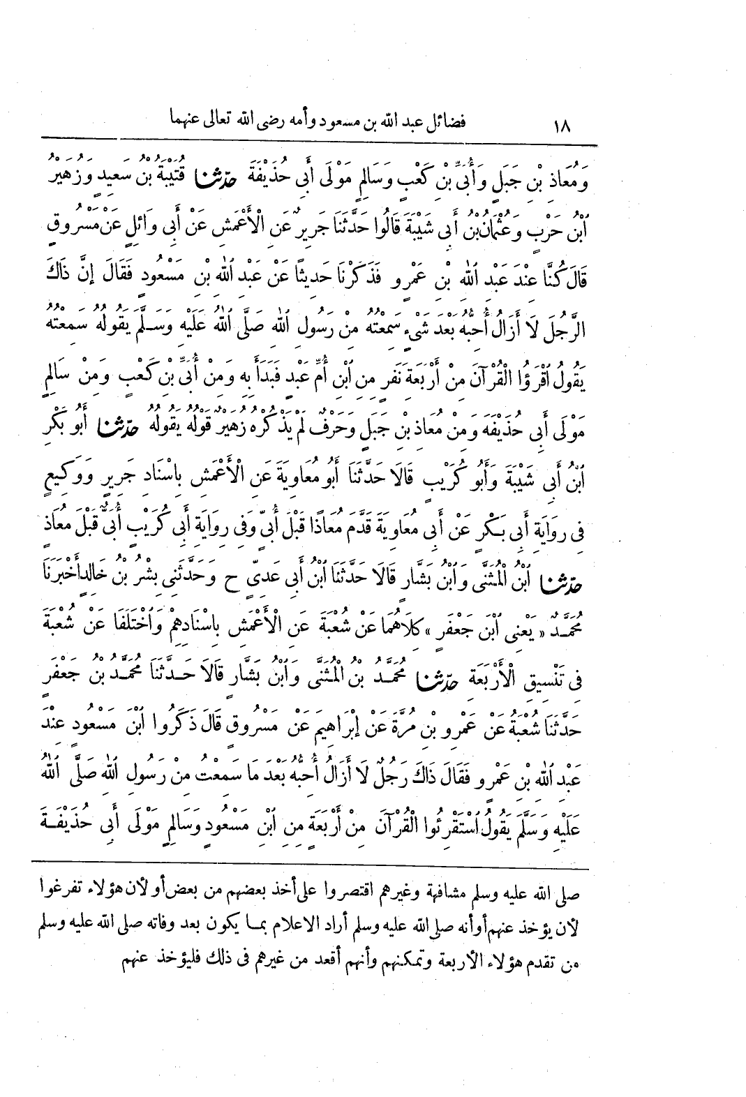 صَلَّى اللَّهُ عَلَيْهِ وَسَلَّمَ مُشَافَهَةً وَغَيْرُهُمُ اقْتَصَرُوا عَلَى أَخْذِ بَعْضِهِمْ مِنْ بَعْضٍ أَوْ لِأَنَّ هَؤُلَاءِ تَفَرَّغُوا لِأَنْ يُؤْخَذَ عَنْهُمْ أَوْ أَنَّهُ صَلَّى اللَّهُ عَلَيْهِ وَسَلَّمَ أَرَادَ الْإِعْلَامَ بِمَا يَكُونُ بَعْدَ وَفَاتِهِ صَلَّى اللَّهُ عَلَيْهِ وَسَلَّمَ مِنْ تَقَدُّمِ هَؤُلَاءِ الْأَرْبَعَةِ وَتَمَكُّنِهِمْ وَأَنَّهُمْ أَقْعَدُ من غيرهم في ذلك فليؤخذ عنهم