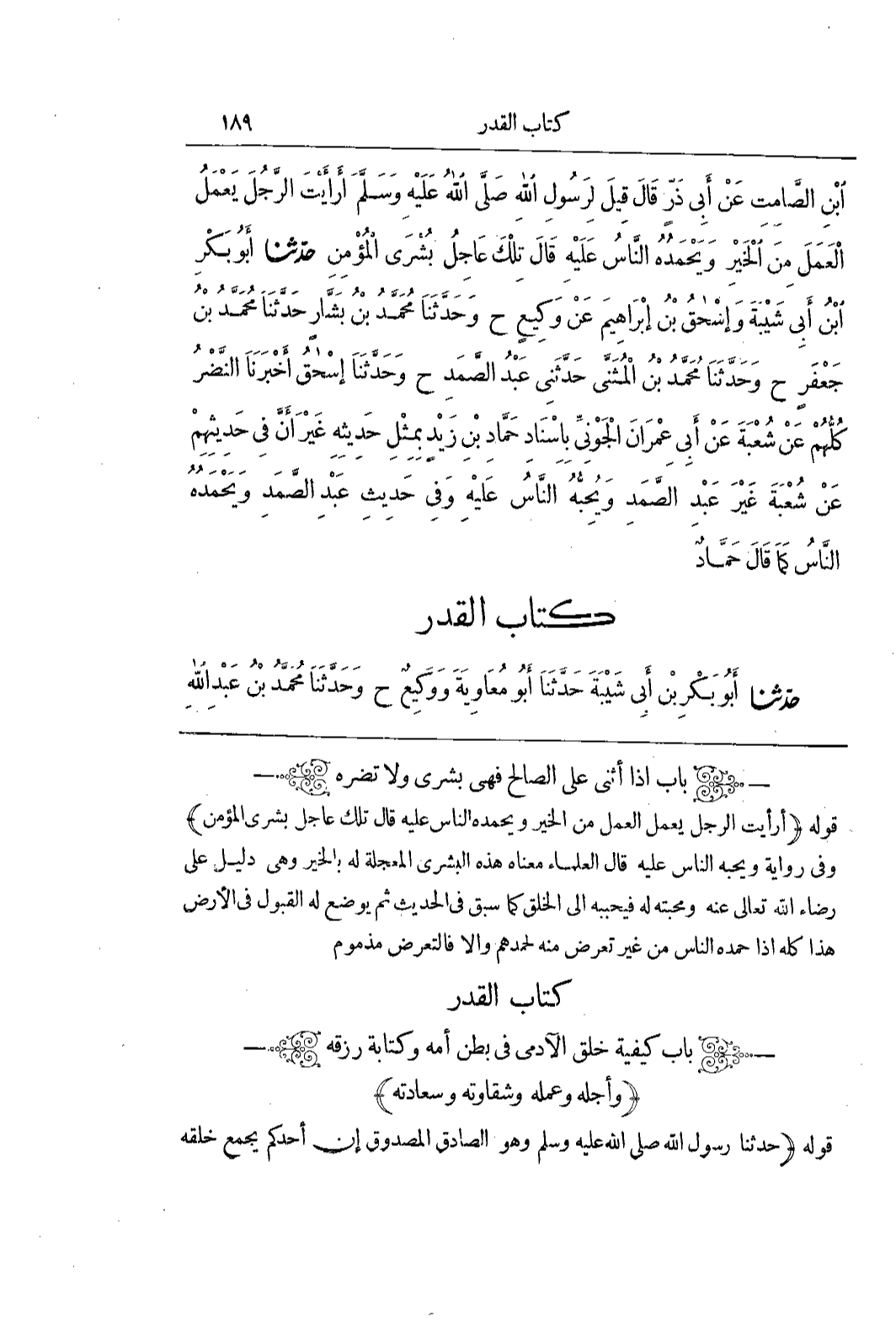 [2642] (أَرَأَيْتَ الرَّجُلَ يَعْمَلُ الْعَمَلَ مِنَ الْخَيْرِ وَيَحْمَدُهُ النَّاسُ عَلَيْهِ قَالَ تِلْكَ عَاجِلُ بُشْرَى الْمُؤْمِنِ) وَفِي رِوَايَةٍ وَيُحِبُّهُ النَّاسُ عَلَيْهِ قَالَ الْعُلَمَاءُ مَعْنَاهُ هَذِهِ الْبُشْرَى الْمُعَجَّلَةُ لَهُ بِالْخَيْرِ وَهِيَ دَلِيلٌ عَلَى رِضَاءِ اللَّهِ تَعَالَى عَنْهُ وَمَحَبَّتِهِ لَهُ فَيُحَبِّبُهُ إِلَى الْخَلْقِ كَمَا سَبَقَ فِي الْحَدِيثِ ثُمَّ يُوضِعُ لَهُ الْقَبُولَ فِي الْأَرْضِ هَذَا كُلُّهُ إِذَا حَمِدَهُ النَّاسُ مِنْ غَيْرِ تَعَرُّضٍ مِنْهُ لِحَمْدِهِمْ وَإِلَّا فَالتَّعَرُّضُ مَذْمُومٌ