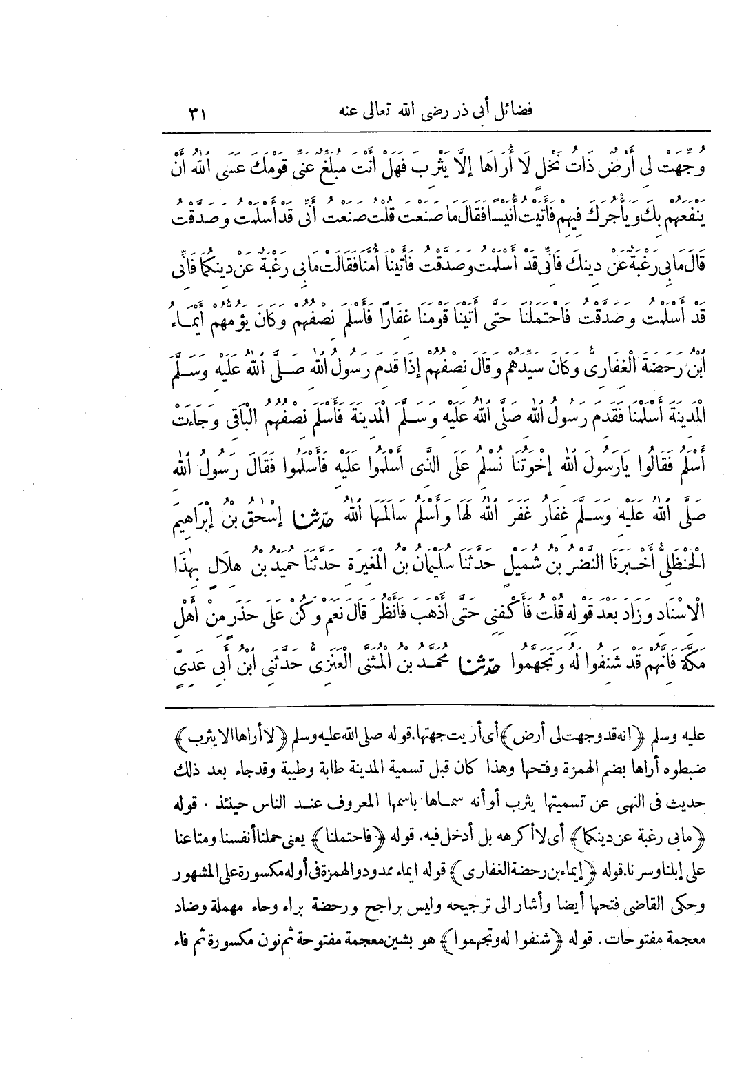 (أنه قد وجهت لي أرض) أي أريت جِهَتَهَا قَوْلُهُ صَلَّى اللَّهُ عَلَيْهِ وَسَلَّمَ (لَا أُرَاهَا إِلَّا يَثْرِبَ) ضَبَطُوهُ أُرَاهَا بِضَمِّ الْهَمْزَةِ وَفَتْحِهَا وَهَذَا كَانَ قَبْلَ تَسْمِيَةِ الْمَدِينَةِ طَابَةَ وَطَيْبَةَ وَقَدْ جَاءَ بَعْدَ ذَلِكَ حَدِيثٌ فِي النَّهْيِ عَنْ تَسْمِيَتِهَا يَثْرِبَ أَوْ أَنَّهُ سَمَّاهَا باسمها المعروف عند الناس حينئذ قوله (مابي رَغْبَةً عَنْ دِينِكُمَا) أَيْ لَا أَكْرَهُهُ بَلْ أَدْخُلُ فِيهِ قَوْلُهُ (فَاحْتَمَلْنَا) يَعْنِي حَمَلْنَا أَنْفُسَنَا وَمَتَاعَنَا عَلَى إِبِلِنَا وَسِرْنَا قَوْلُهُ (إِيْمَاءُ بْنُ رَحَضَةَ الْغِفَارِيُّ) قَوْلُهُ إِيْمَاءُ مَمْدُودٌ وَالْهَمْزَةُ فِي أَوَّلِهِ مَكْسُورَةٌ عَلَى الْمَشْهُورِ وَحَكَى الْقَاضِي فَتْحَهَا ايضا وأشار إلى ترجيحه وليس براجح ورحضة بِرَاءٍ وَحَاءٍ مُهْمَلَةٍ وَضَادٍ مُعْجَمَةٍ مَفْتُوحَاتٍ قَوْلُهُ (شَنِفُوا لَهُ وَتَجَهَّمُوا) هُوَ بِشِينٍ مُعْجَمَةٍ مَفْتُوحَةٍ ثُمَّ نُونٍ مَكْسُورَةٍ ثُمَّ فَاءٍ