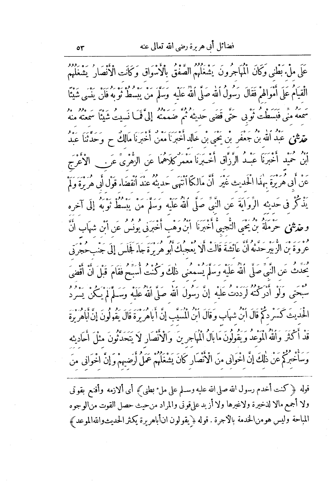 [2492] (كُنْتُ أَخْدُمُ رَسُولَ اللَّهِ صَلَّى اللَّهُ عَلَيْهِ وَسَلَّمَ عَلَى مِلْءِ بَطْنِي) أَيْ أُلَازِمُهُ وَأَقْنَعُ بِقُوتِي وَلَا أَجْمَعُ مَالًا لِذَخِيرَةٍ وَلَا غَيْرِهَا وَلَا أَزِيدُ عَلَى قُوتِي وَالْمُرَادُ مِنْ حَيْثُ حَصَلَ الْقُوتُ مِنَ الْوُجُوهِ الْمُبَاحَةِ وَلَيْسَ هُوَ مِنَ الْخِدْمَةِ بِالْأُجْرَةِ قَوْلُهُ (يَقُولُونَ إِنَّ أَبَا هُرَيْرَةَ يُكْثِرُ الْحَدِيثَ وَاَللَّهُ الْمَوْعِدُ