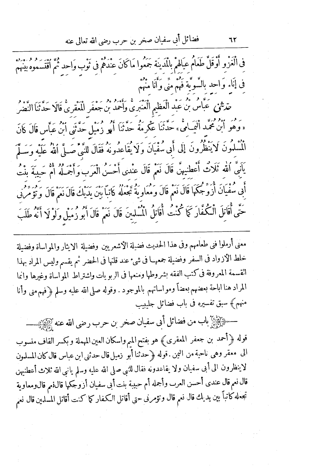 [2501] (أَحْمَدُ بْنُ جَعْفَرٍ الْمَعْقِرِيُّ) هُوَ بِفَتْحِ الْمِيمِ وَإِسْكَانِ الْعَيْنِ الْمُهْمَلَةِ وَبِكَسْرِ الْقَافِ مَنْسُوبٌ إِلَى مَعْقِرَ وَهِيَ نَاحِيَةٌ مِنَ الْيَمَنِ قَوْلُهُ (حَدَّثَنَا أَبُو زميل قال حدثني بن عَبَّاسِ قَالَ كَانَ الْمُسْلِمُونَ لَا يَنْظُرُونَ إِلَى أَبِي سُفْيَانَ وَلَا يُقَاعِدُونَهُ فَقَالَ لِلنَّبِيِّ صَلَّى اللَّهُ عَلَيْهِ وَسَلَّمَ يَا نَبِيَّ اللَّهِ ثَلَاثٌ أَعْطِنِيهِنَّ قَالَ نَعَمْ قَالَ عِنْدِي أَحْسَنُ الْعَرَبِ وَأَجْمَلُهُ أُمُّ حَبِيبَةَ بِنْتِ أَبِي سُفْيَانَ أُزَوِّجُكَهَا قَالَ نَعَمْ قَالَ وَمُعَاوِيَةُ تَجْعَلُهُ كَاتِبًا بَيْنَ يَدَيْكَ قَالَ نَعَمْ قَالَ وَتُؤَمِّرُنِي حَتَّى أُقَاتِلَ الْكُفَّارَ كَمَا كُنْتُ أُقَاتِلَ الْمُسْلِمِينَ قَالَ نَعَمْ)