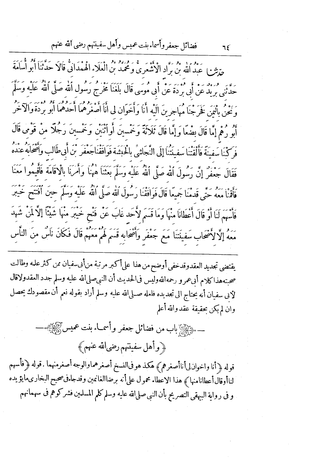 (بَاب من فضائل جعفر وَأَسْمَاءَ بِنْتِ عُمَيْسٍ)