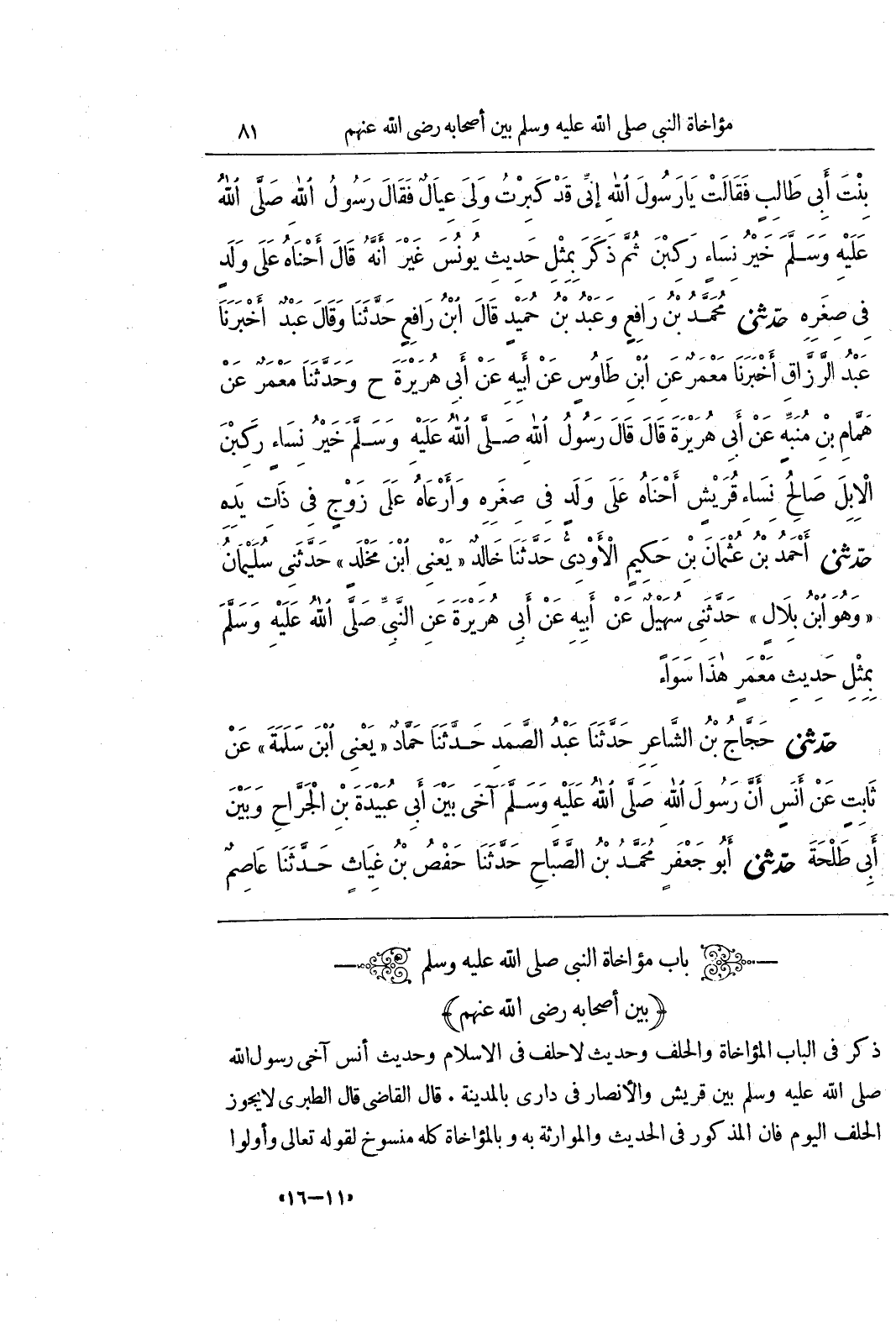 (باب مؤاخاة النبي صلى الله عليه وسلم)