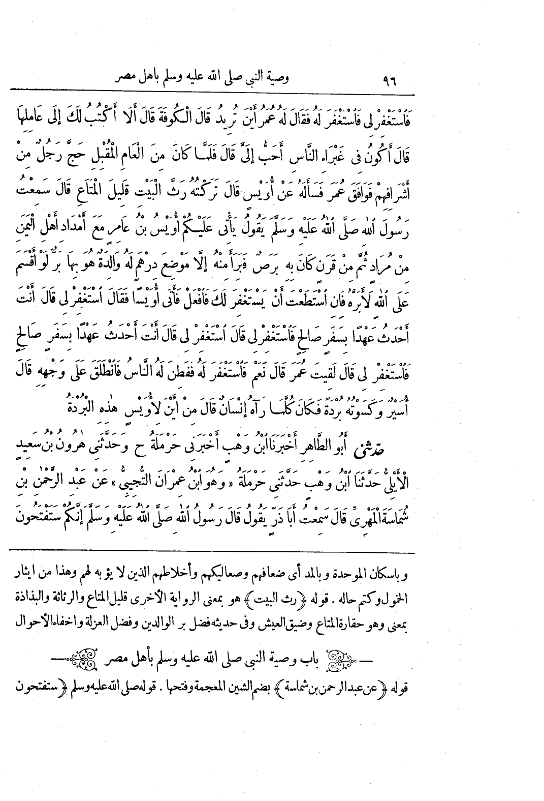 [2543] (عَنْ عَبْدِ الرَّحْمَنِ بْنِ شُمَاسَةَ) بِضَمِّ الشِّينِ الْمُعْجَمَةِ وَفَتْحِهَا قَوْلُهُ صَلَّى اللَّهُ عَلَيْهِ وَسَلَّمَ (سَتَفْتَحُونَ