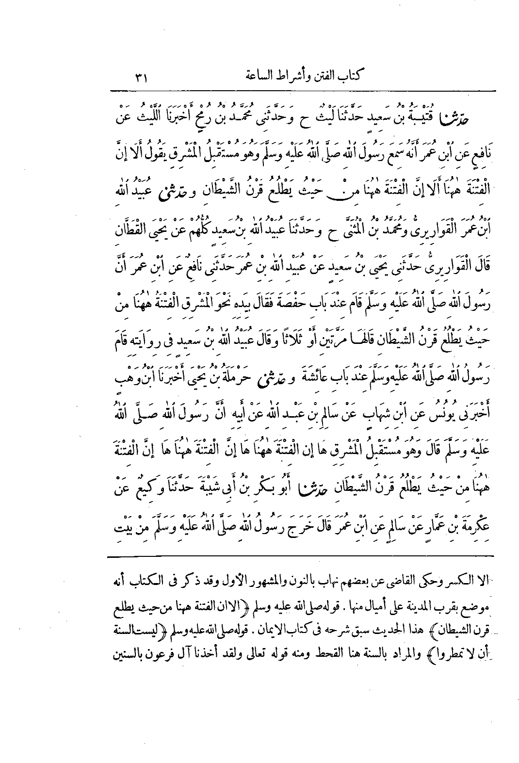 [2905] قَوْلُهُ صَلَّى الله عليه وسلم (الاان الفتنة ها هُنَا مِنْ حَيْثُ يَطْلُعُ قَرْنُ الشَّيْطَانِ هَذَا الْحَدِيثُ سَبَقَ شَرْحُهُ فِي كِتَابِ الْإِيمَانِ