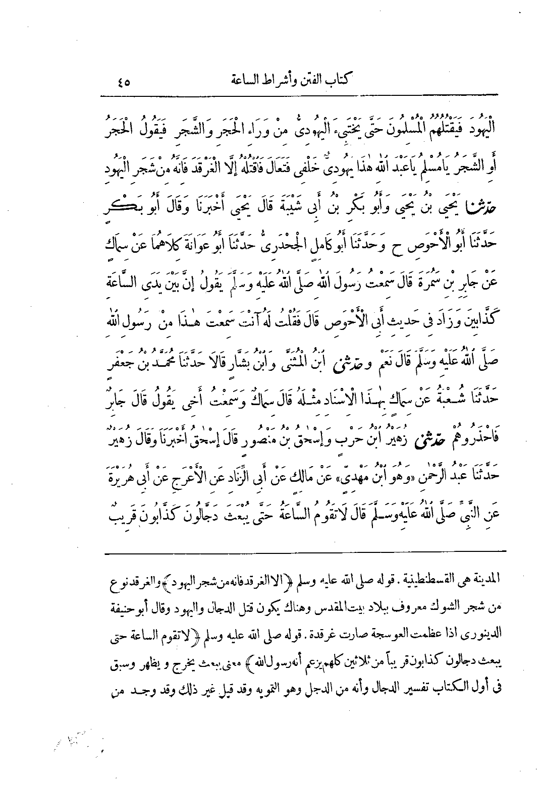 [157] قَوْلُهُ صلى الله عليه وسلم (لاتقوم السَّاعَةُ حَتَّى يُبْعَثَ دَجَّالُونَ كَذَّابُونَ قَرِيبًا مِنْ ثَلَاثِينَ كُلُّهُمْ يَزْعُمُ أَنَّهُ رَسُولُ اللَّهِ) مَعْنَى يُبْعَثُ يَخْرُجُ وَيَظْهَرُ وَسَبَقَ فِي أَوَّلِ الْكِتَابِ تَفْسِيرَ الدَّجَّالِ وَأَنَّهُ مِنَ الدَّجْلِ وَهُوَ التَّمْوِيهُ وَقَدْ قِيلَ غَيْرُ ذَلِكَ وَقَدْ وُجِدَ مِنْ