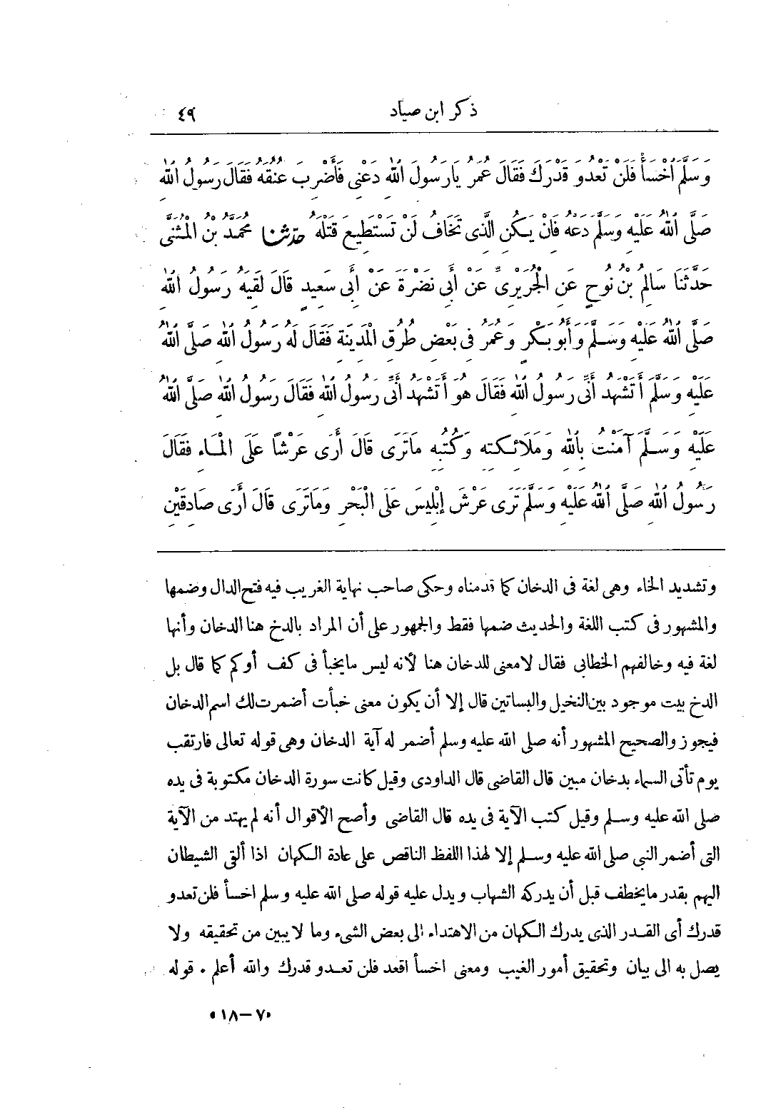 وَتَشْدِيدِ الْخَاءِ وَهِيَ لُغَةٌ فِي الدُّخَانِ كَمَا قَدَّمْنَاهُ وَحَكَى صَاحِبُ نِهَايَةِ الْغَرِيبِ فِيهِ فَتْحَ الدَّالِ وَضَمَّهَا وَالْمَشْهُورُ فِي كُتُبِ اللُّغَةِ وَالْحَدِيثِ ضَمُّهَا فَقَطْ وَالْجُمْهُورُ عَلَى أَنَّ الْمُرَادَ بِالدُّخِّ هُنَا الدُّخَانُ وَأَنَّهَا لُغَةٌ فِيهِ وَخَالَفَهُمُ الْخَطَّابِيُّ فقال لامعنى لِلدُّخَانِ هُنَا لِأَنَّهُ لَيْسَ مَا يُخَبَّأُ فِي كف أوكم كَمَا قَالَ بَلِ الدُّخُّ بَيْتٌ مَوْجُودٌ بَيْنَ النَّخِيلِ وَالْبَسَاتِينِ قَالَ إِلَّا أَنْ يَكُونَ مَعْنَى خَبَّأْتُ أَضْمَرْتُ لَكَ اسْمَ الدُّخَانِ فَيَجُوزُ وَالصَّحِيحُ الْمَشْهُورُ أَنَّهُ صَلَّى اللَّهُ عَلَيْهِ وَسَلَّمَ أَضْمَرَ لَهُ آيَةَ الدُّخَانِ وَهِيَ قَوْلُهُ تَعَالَى فَارْتَقِبْ يوم تأتى السماء بدخان مبين قَالَ الْقَاضِي قَالَ الدَّاوُدِيُّ وَقِيلَ كَانَتْ سُورَةُ الدُّخَانِ مَكْتُوبَةً فِي يَدِهِ صَلَّى اللَّهُ عَلَيْهِ وَسَلَّمَ وَقِيلَ كَتَبَ الْآيَةَ فِي يَدِهِ قَالَ الْقَاضِي وَأَصَحُّ الْأَقْوَالِ أَنَّهُ لَمْ يَهْتَدِ مِنَ الْآيَةِ الَّتِي أَضْمَرَ النَّبِيُّ صَلَّى اللَّهُ عَلَيْهِ وَسَلَّمَ إِلَّا لِهَذَا اللَّفْظِ النَّاقِصِ عَلَى عَادَةِ الْكُهَّانِ إِذَا أَلْقَى الشَّيْطَانُ إِلَيْهِمْ بِقَدْرِ مَا يَخْطَفُ قَبْلَ أَنْ يُدْرِكَهُ الشِّهَابُ وَيَدُلُّ عَلَيْهِ قَوْلُهُ صَلَّى اللَّهُ عَلَيْهِ وَسَلَّمَ اخْسَأْ فَلَنْ تَعْدُوَ قَدْرَكَ أَيِ الْقَدْرَ الَّذِي يُدْرِكُ الْكُهَّانُ من الاهتداء إلى بعض الشيء وما لايبين مِنْ تَحْقِيقِهِ وَلَا يَصِلُ بِهِ إِلَى بَيَانِ وَتَحْقِيقِ أُمُورِ الْغَيْبِ وَمَعْنَى اخْسَأْ اقْعُدْ فَلَنْ تَعْدُوَ قَدْرَكَ وَاللَّهُ أَعْلَمُ قَوْلُهُ