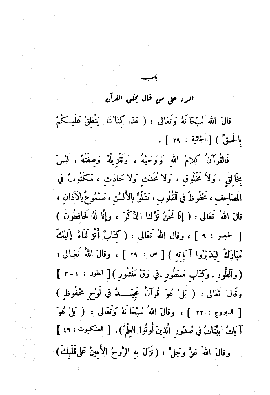 بَابُ الرَّدِّ عَلَى مَنْ قَالَ بِخَلْقِ الْقُرْآنِ