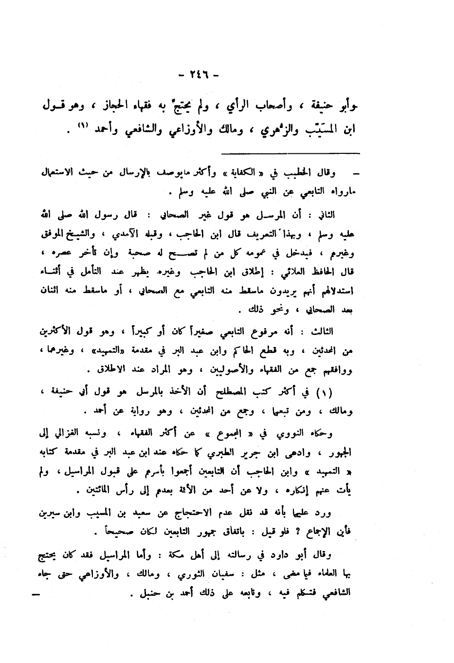 وَأَبُو حَنِيفَةَ، وَأَصْحَابُ الرَّأْيِ، وَلَمْ يَحْتَجَّ بِهِ فُقَهَاءُ الْحِجَازِ، وَهُوَ قَوْلُ ابْنِ الْمُسَيَّبِ، وَالزُّهْرِيِّ، وَمَالِكٍ، وَالأَوْزَاعِيِّ، وَالشَّافِعِيِّ، وَأَحْمَدَ.