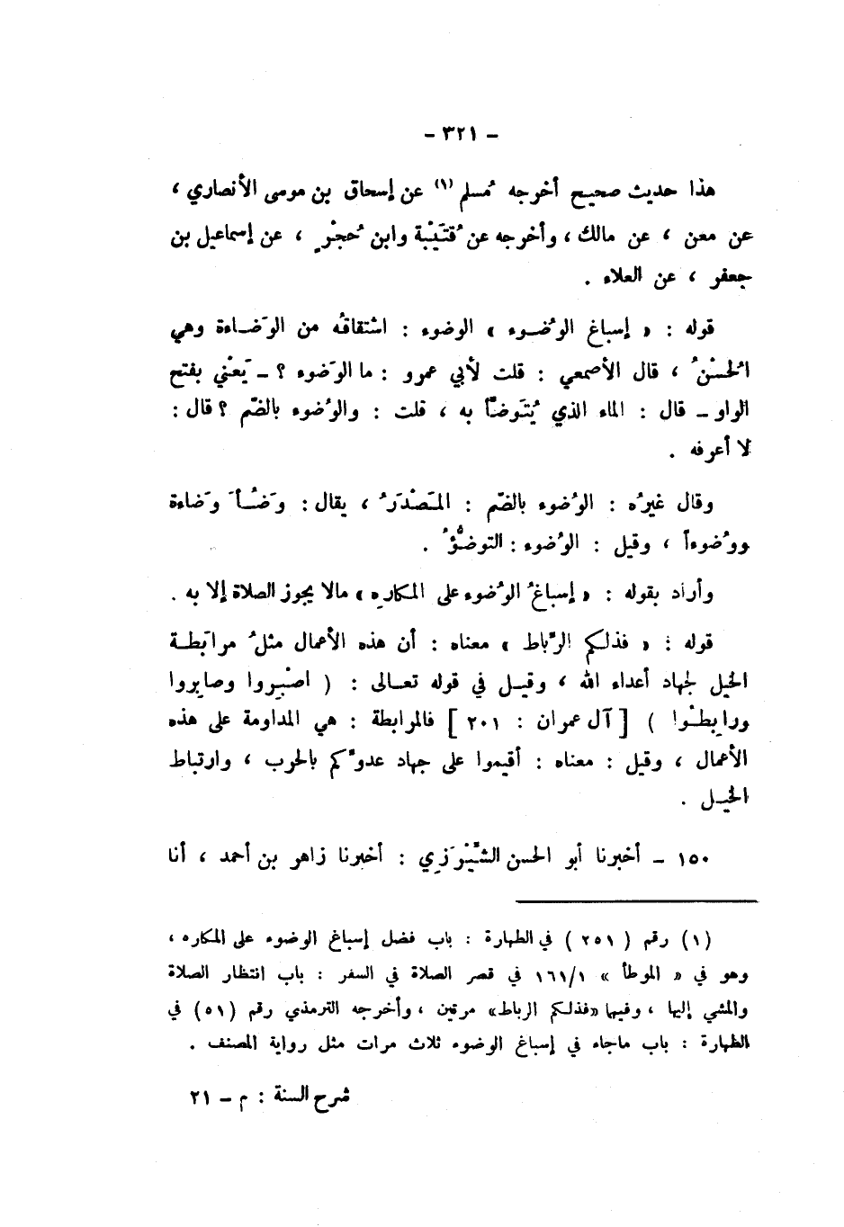 وَأَرَادَ بِقَوْلِهِ: «إِسْبَاغُ الْوُضُوءِ عَلَى الْمَكَارِهِ» مَا لَا يَجُوزُ الصَّلاةُ إِلا بِهِ.