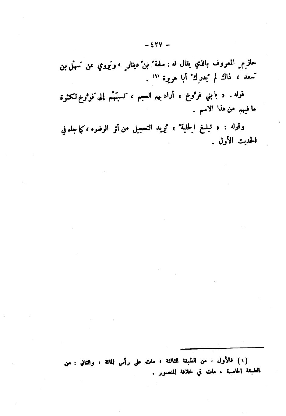 حَازِمٍ الْمَعْرُوفِ بِالَّذِي يُقَالُ لَهُ: سَلَمَةُ بْنُ دِينَارٍ، وَيَرْوِي عَنْ سَهْلِ بْنِ سَعْدٍ، ذَاكَ لَمْ يُدْرِكْ أَبَا هُرَيْرَةَ.