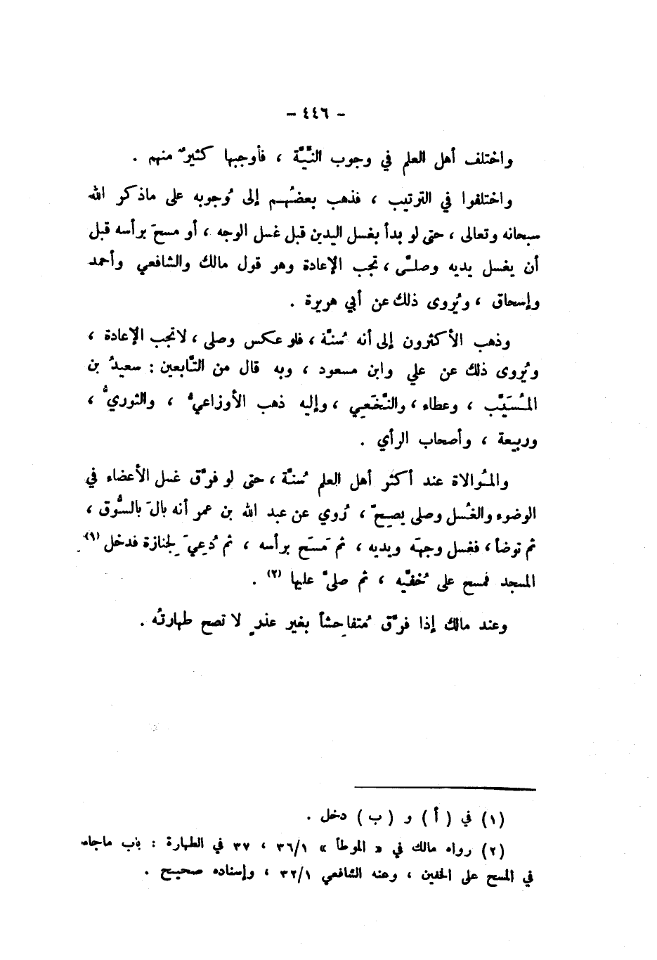 وَاخْتَلَفَ أَهْلُ الْعِلْمِ فِي وُجُوبِ النِّيَّةِ، فَأَوْجَبَهَا كَثِيرٌ مِنْهُمْ.