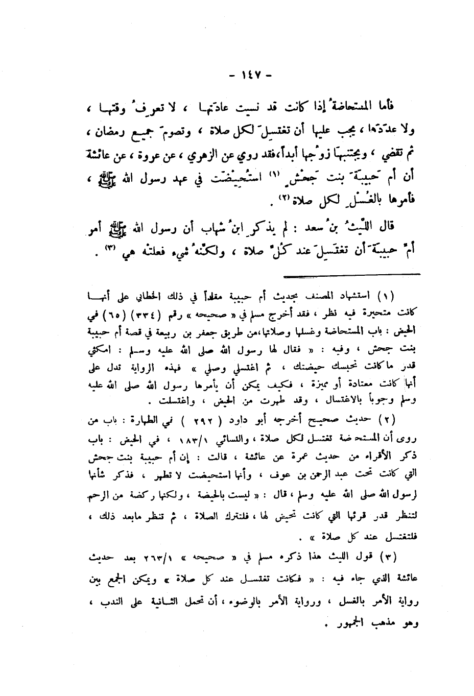 قَالَ اللَّيْثُ بْنُ سَعْدٍ: لَمْ يَذْكُرِ ابْنُ شِهَابٍ أَنَّ رَسُولَ اللَّهِ صَلَّى اللهُ عَلَيْهِ وَسَلَّمَ أَمَرَ أُمَّ حَبِيبَةَ أَنْ تَغْتَسِلَ عِنْدَ كُلِّ صَلاةٍ، وَلَكِنَّهُ شَيْءٌ فَعَلَتْهُ هِيَ.