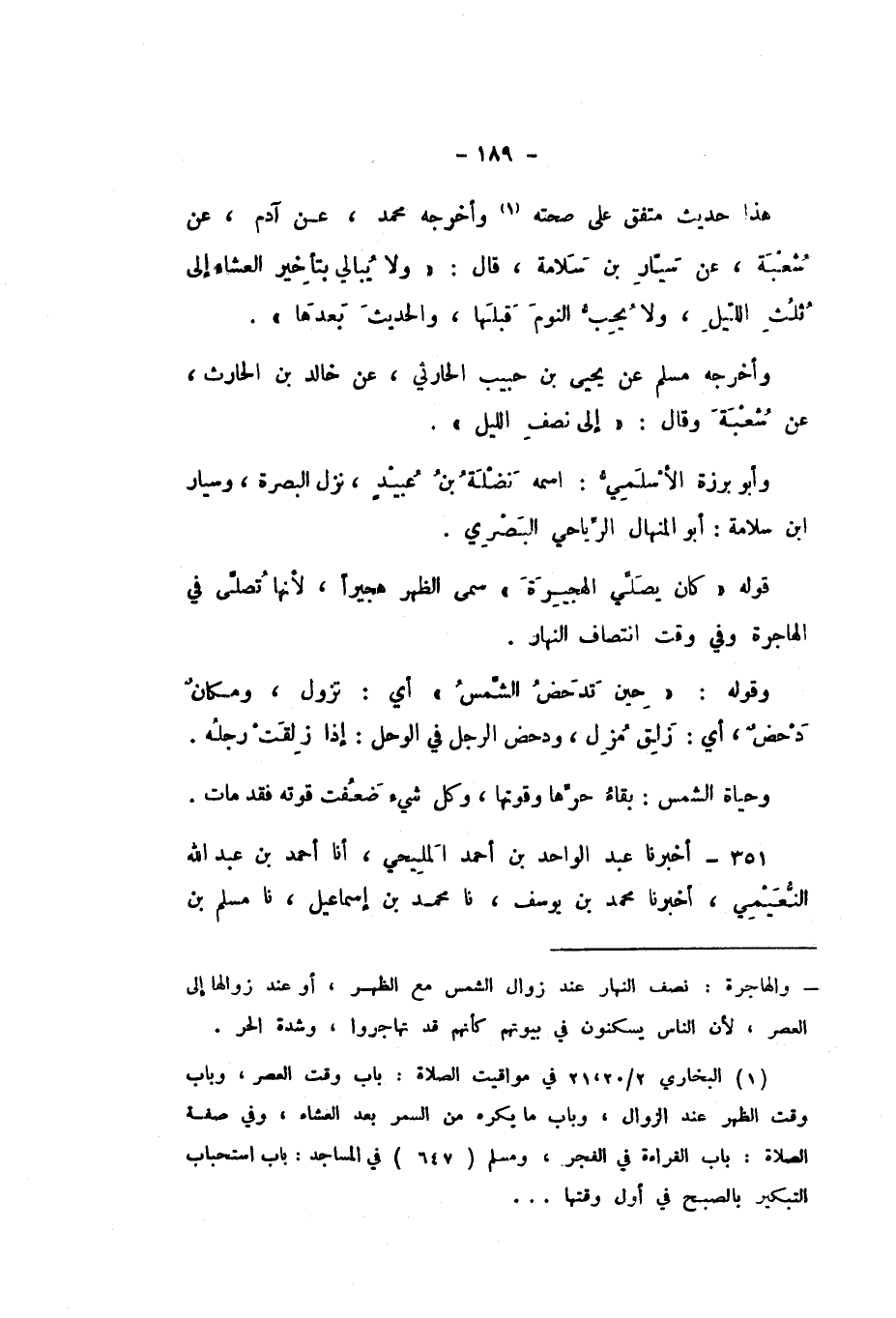 وَأَخْرَجَهُ مُسْلِمٌ، عَنْ يَحْيَى بْنِ حَبِيبٍ الْحَارِثِيِّ، عَنْ خَالِدِ بْنِ الْحَارِثِ، عَنْ شُعْبَةَ، وَقَالَ: «إِلَى نِصْفِ اللَّيْلِ».