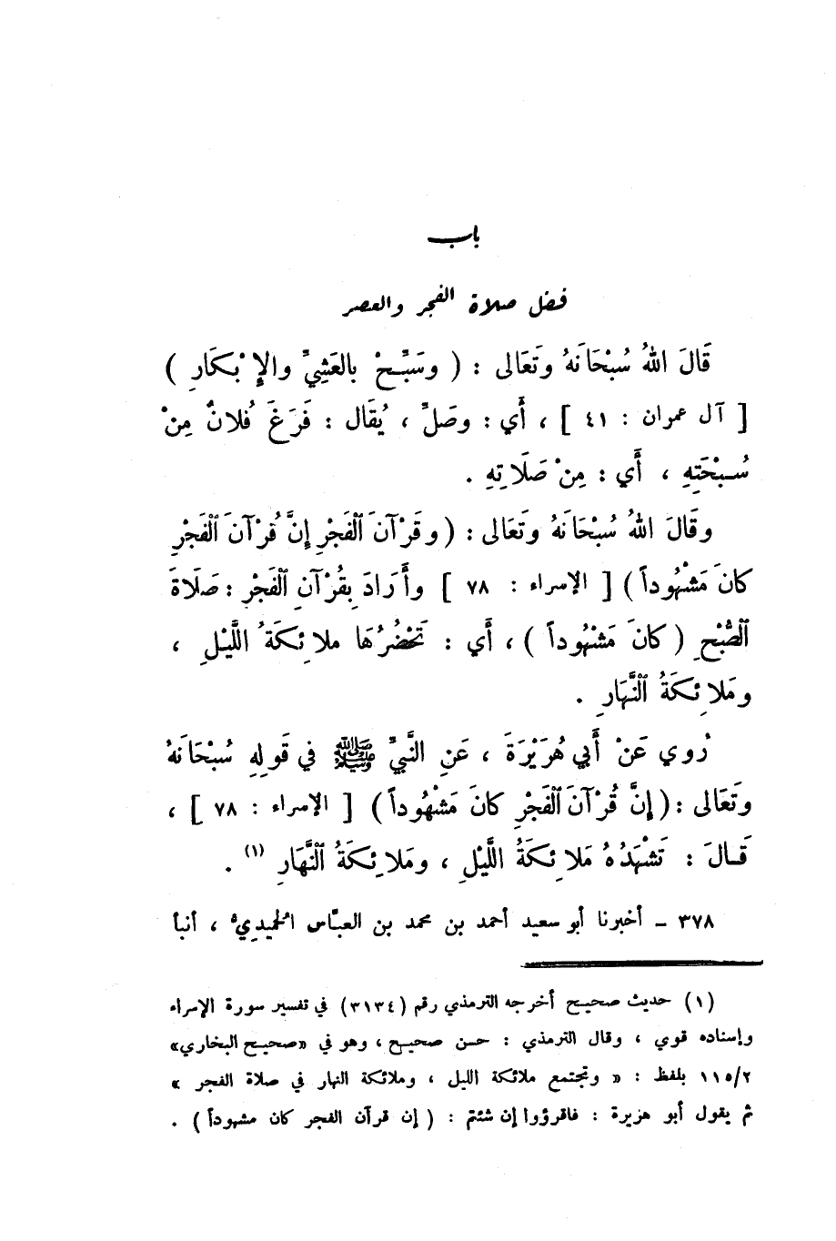 وَقَالَ اللَّهُ سُبْحَانَهُ وَتَعَالَى: {وَقُرْءَانَ الْفَجْرِ إِنَّ قُرْءَانَ الْفَجْرِ كَانَ مَشْهُودًا} [الْإِسْرَاء: 78]، وَأَرَادَ بِقُرْآنِ الْفَجْرِ: صَلاةُ الصُّبْحِ.