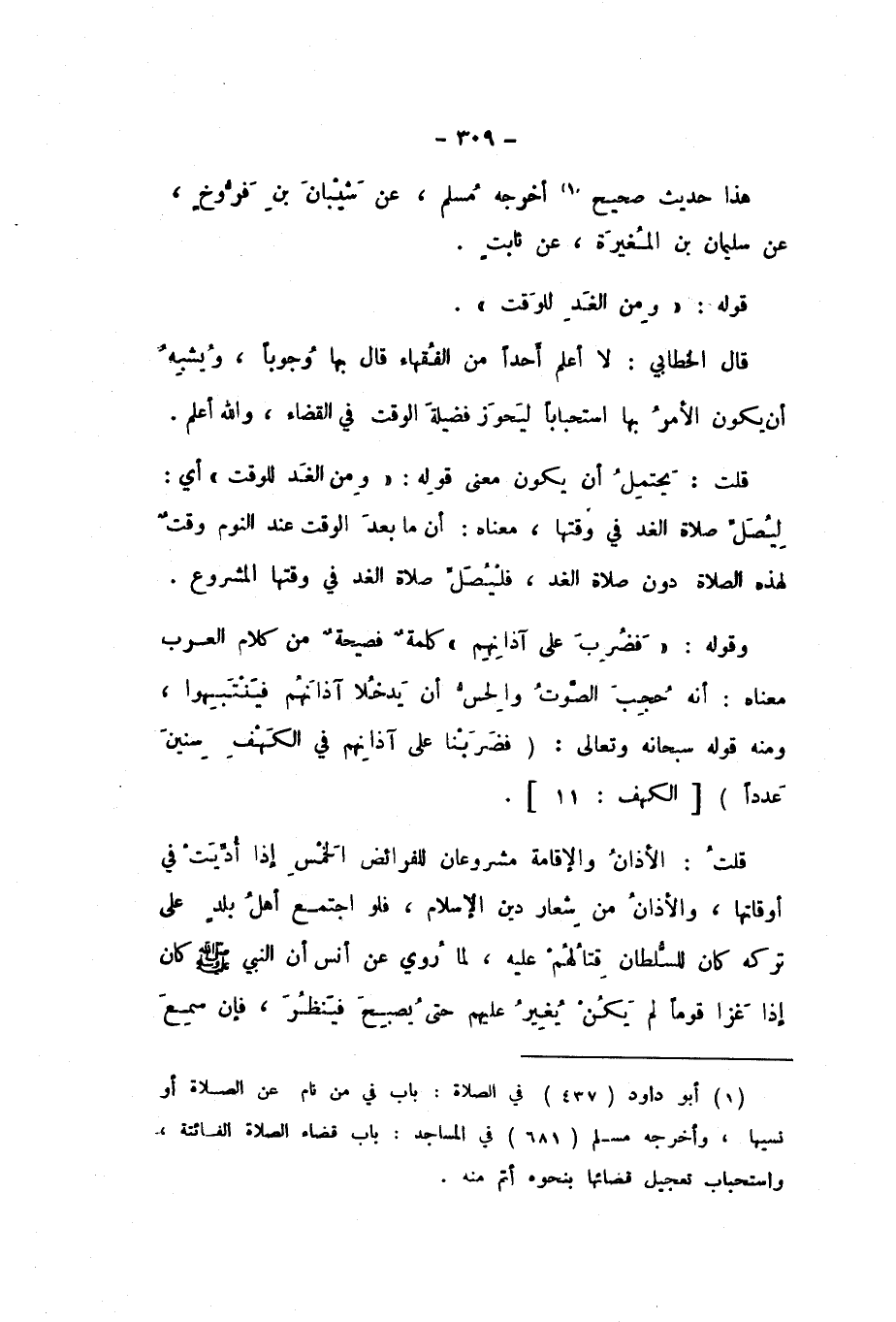 قُلْتُ: يَحْتَمِلُ أَنْ يَكُونَ مَعْنَى قَوْلِهِ: «وَمِنَ الْغَدِ لِلْوَقْتِ» أَيْ: لِيُصَلِّ صَلاةَ الْغَدِ فِي وَقْتِهَا، مَعْنَاهُ: أَنَّ مَا بَعْدَ الْوَقْتِ عِنْدَ النَّوْمِ وَقْتٌ لِهَذِهِ الصَّلاةِ دُونَ صَلاةِ الْغَدِ، فَلْيُصَلِّ صَلاةَ الْغَدِ فِي وَقْتِهَا الْمَشْرُوعِ.