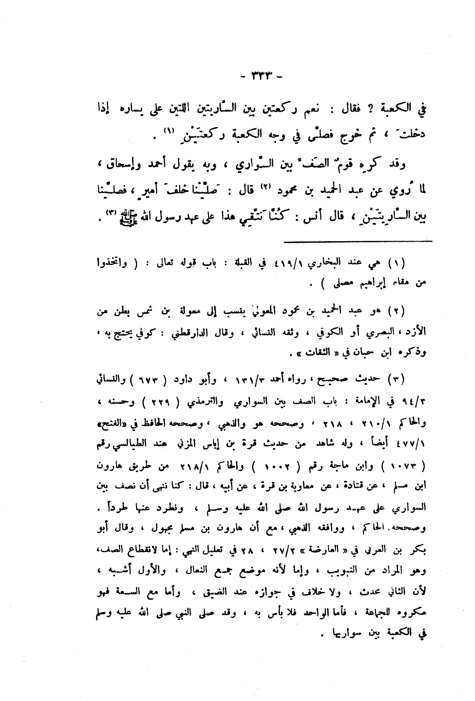 وَقَدْ كَرِهَ قَوْمٌ الصَّفَّ بَيْنَ السَّوَارِي، وَبِهِ يَقُولُ أَحْمَدُ، وَإِسْحَاقُ، لِمَا رُوِيَ عَنْ عَبْدِ الْحَمِيدِ بْنِ مَحْمُودٍ، قَالَ: صَلَّيْنَا خَلْفَ أَمِيرٍ، فَصَلَّيْنَا بَيْنَ السَّارِيَتَيْنِ.