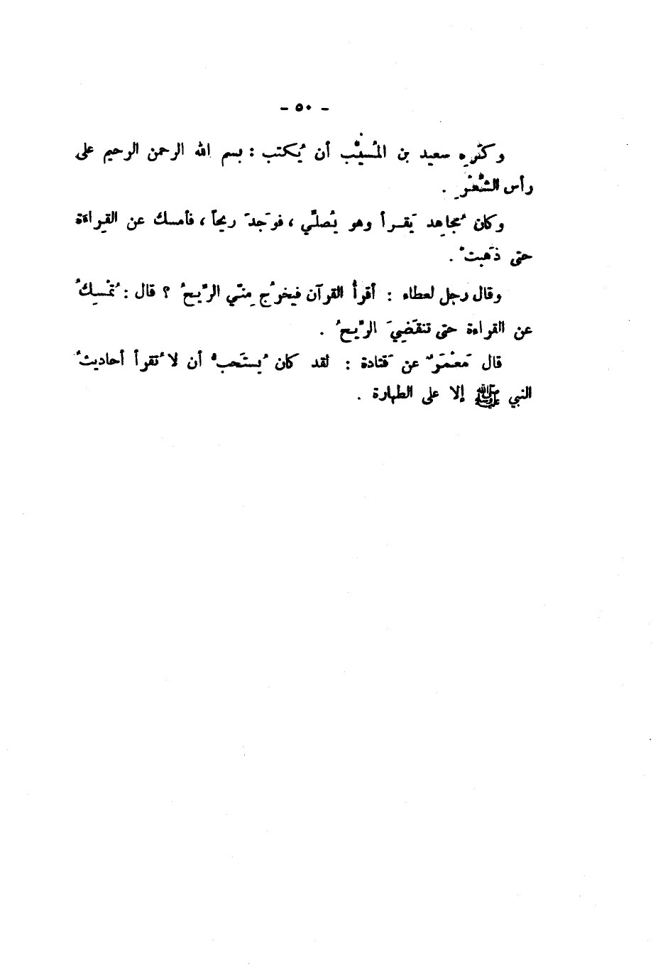 وَكَرِهَ سَعِيدُ بْنُ الْمُسَيِّبِ أَنْ يَكْتُبَ: بِسْمِ اللَّهِ الرَّحْمَنِ الرَّحِيمِ عَلَى رَأْسِ الشِّعْرِ.