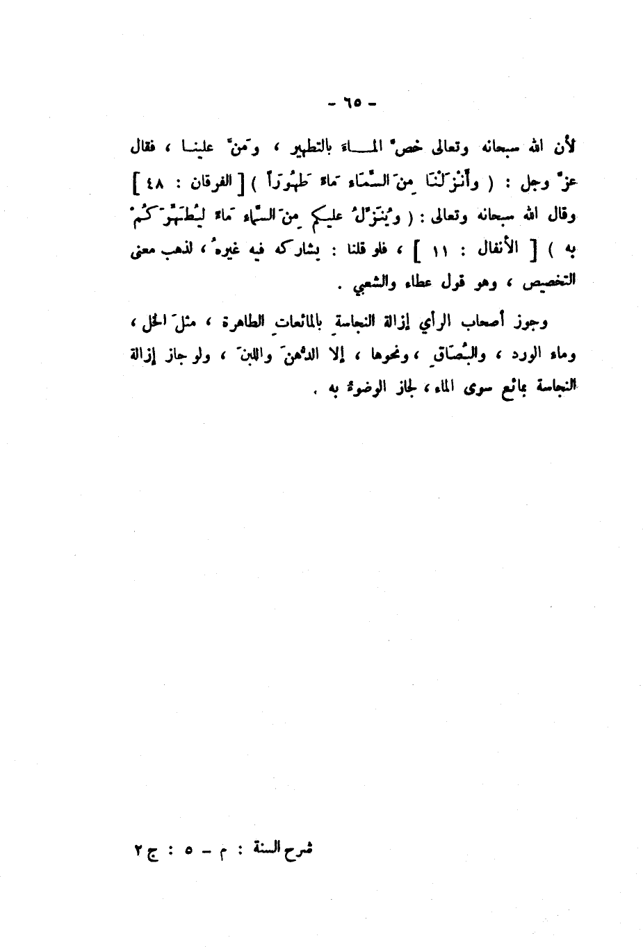 لأَنَّ اللَّهَ سُبْحَانَهُ وَتَعَالَى خَصَّ الْمَاءَ بِالتَّطْهِيرِ، وَمَنَّ عَلَيْنَا، فَقَالَ عَزَّ وَجَلَّ: {وَأَنْزَلْنَا مِنَ السَّمَاءِ مَاءً طَهُورًا} [الْفرْقَان: 48] وَقَالَ اللَّهُ سُبْحَانَهُ وَتَعَالَى: {وَيُنَزِّلُ عَلَيْكُمْ مِنَ السَّمَاءِ مَاءً لِيُطَهِّرَكُمْ بِهِ} [الْأَنْفَال: 11]، فَلَوْ قُلْنَا: «يُشَارِكُهُ فِي غَيْرِهِ» لَذَهَبَ مَعْنَى التَّخْصِيصِ، وَهُوَ قَوْلُ عَطَاءٍ، وَالشَّعْبِيِّ.