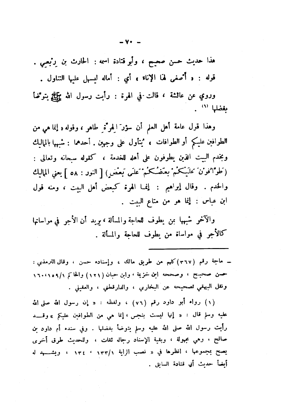 وَقَوْلُهُ: «إِنَّمَا هِيَ مِنَ الطَّوَّافِينَ عَلَيْكُمْ أَوِ الطَّوَّافَاتِ».