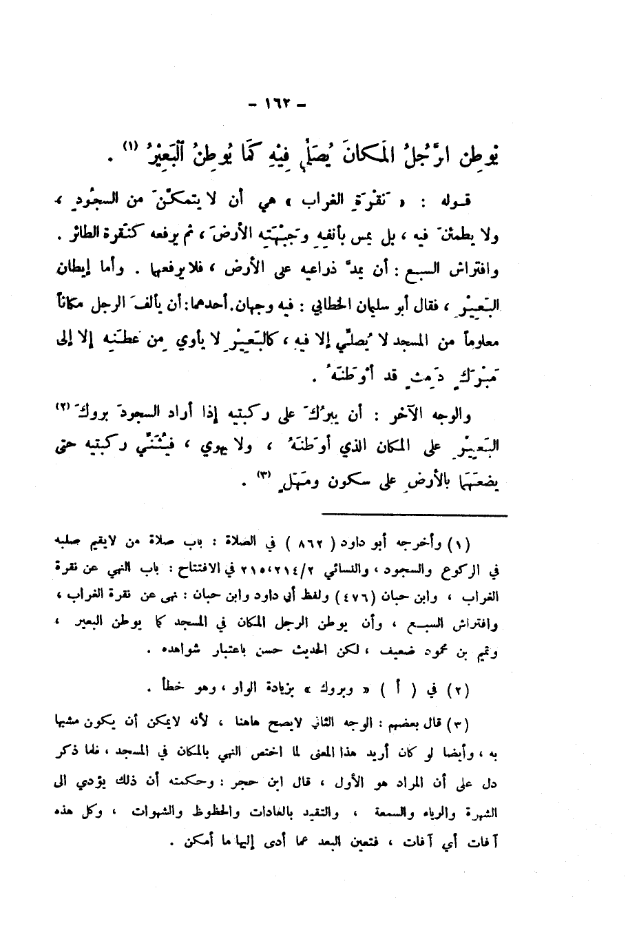 يُوطِنُ الرَّجُلُ الْمَكَانَ يُصَلِّي فِيهِ كَمَا يُوطِنُ الْبَعِيرُ "
