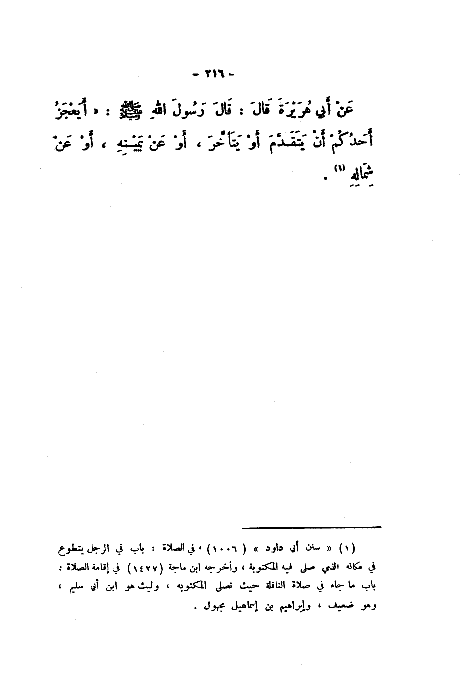 عَنْ أَبِي هُرَيْرَةَ، قَالَ: قَالَ رَسُولُ اللَّهِ صَلَّى اللهُ عَلَيْهِ وَسَلَّمَ: «أَيَعْجَزُ أَحَدُكُمْ أَنْ يَتَقَدَّمَ أَوْ يَتَأَخَّرَ، أَوْ عَنْ يَمِينِهِ، أَوْ عَنْ شِمَالِهِ»