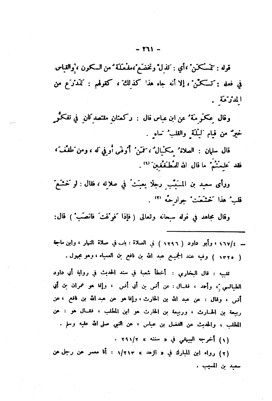 وَرَأَى سَعِيدُ بْنُ الْمُسَيِّبِ رَجُلا يَعْبَثُ فِي صَلاتِهِ، فَقَالَ: لَوْ خَشَعَ قَلْبُ هَذَا، خَشَعَتْ جَوَارِحُهُ.