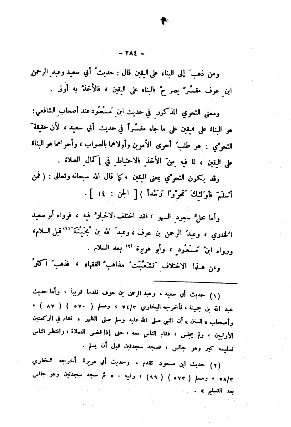 وَمَعْنَى التَّحَرِّي الْمَذْكُورِ فِي حَدِيثِ ابْنِ مَسْعُودٍ عِنْدَ أَصْحَابِ الشَّافِعِيِّ: هُوَ الْبِنَاءُ عَلَى الْيَقِينِ عَلَى مَا جَاءَ مُفَسَّرًا فِي حَدِيثِ أَبِي سَعِيدٍ، لأَنَّ حَقِيقَةَ التَّحَرِّي: هُوَ طَلَبُ أَحْرَى الأَمْرَيْنِ، وَأَوْلاهُمَا بِالصَّوَابِ، وَأَحْرَاهُمَا هُوَ الْبِنَاءُ عَلَى الْيَقِينِ، لِمَا فِيهِ مِنَ الأَخْذِ بِالاحْتِيَاطِ فِي إِكْمَالِ الصَّلاةِ.