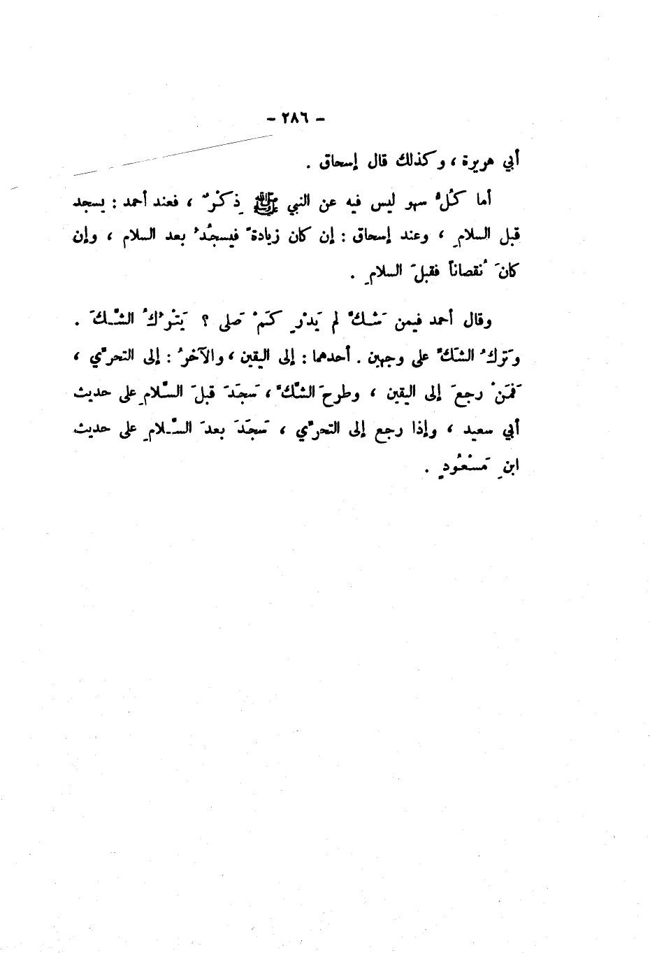 أَمَّا كُلُّ سَهْوٍ لَيْسَ فِيهِ عَنِ النَّبِيِّ صَلَّى اللهُ عَلَيْهِ وَسَلَّمَ ذِكْرٌ، فَعِنْدَ أَحْمَدَ: يَسْجُدُ قَبْلَ السَّلامِ، وَعِنْدَ إِسْحَاقَ: إِنْ كَانَ زِيَادَةً، فَيَسْجُدُ بَعْدَ السَّلامِ، وَإِنْ كَانَ نُقْصَانًا فَقَبْلَ السَّلامِ.
