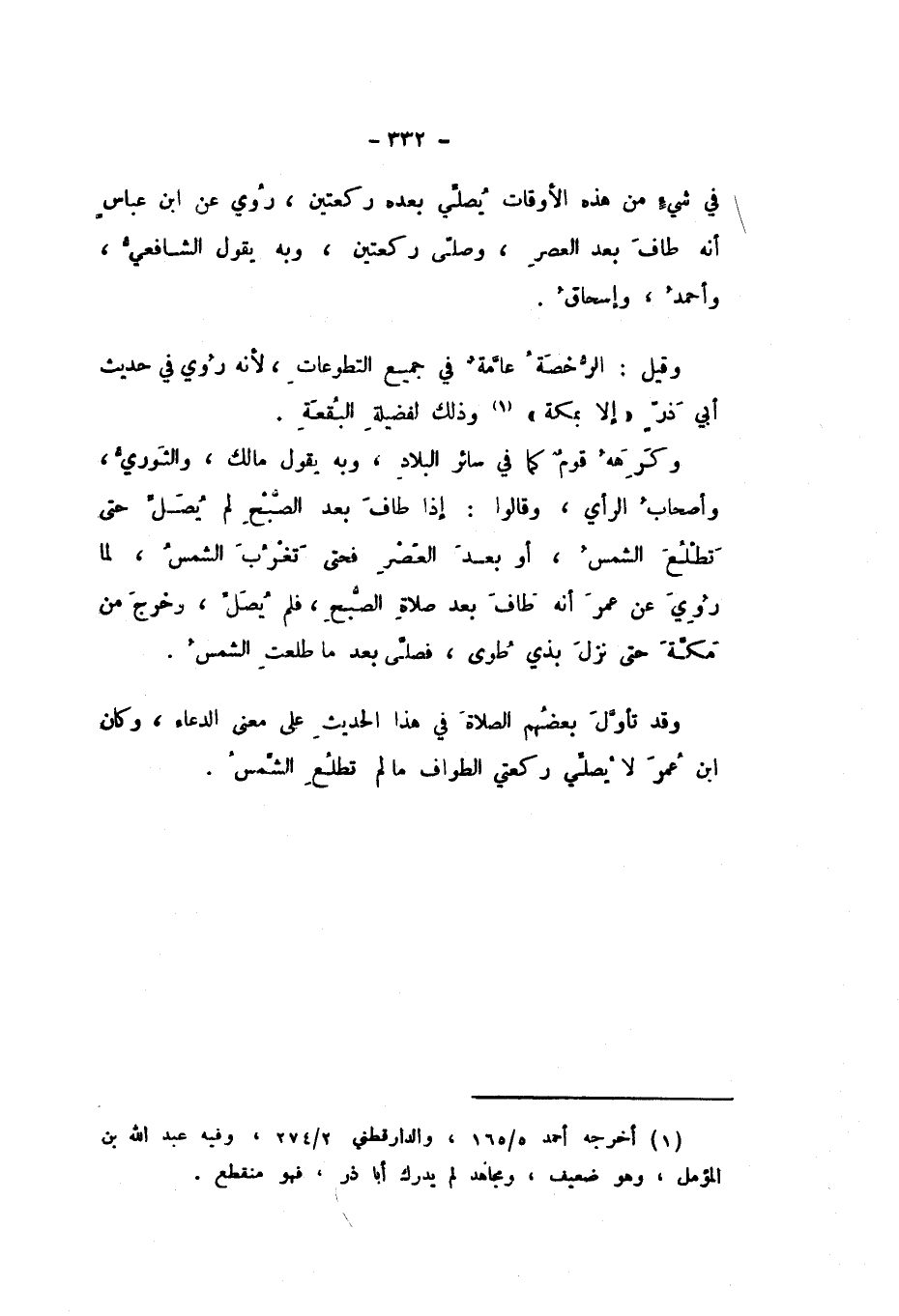 وَقَدْ تَأَوَّلَ بَعْضُهُمُ الصَّلاةَ فِي هَذَا الْحَدِيثِ عَلَى مَعْنَى الدُّعَاءِ، وَكَانَ ابْنُ عُمَرَ «لَا يُصَلِّي رَكْعَتَيِ الطَّوَافِ مَا لَمْ تَطْلُعِ الشَّمْسُ».