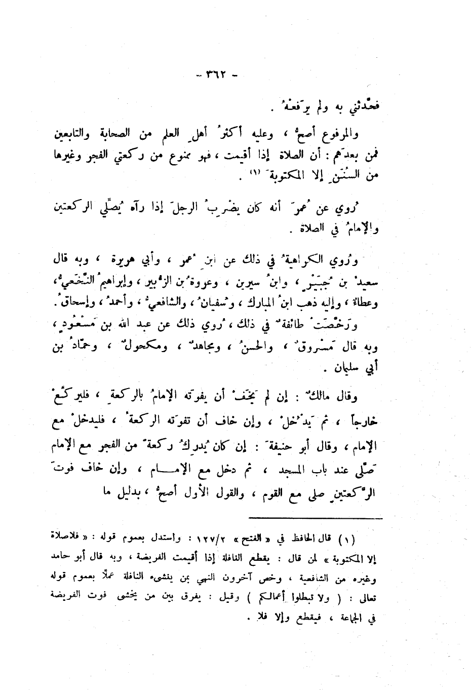 وَالْمَرْفُوعُ أَصَحُّ، وَعَلَيْهِ أَكْثَرُ أَهْلِ الْعِلْمِ مِنَ الصَّحَابَةِ، وَالتَّابِعِينَ فَمَنْ بَعْدَهُمْ: أَنَّ الصَّلاةَ إِذَا أُقِيمَتْ، فَهُوَ مَمْنُوعٌ مِنْ رَكْعَتَيِ الْفَجْرِ، وَغَيْرِهَا مِنَ السُّنَنِ إِلا الْمَكْتُوبَةَ.