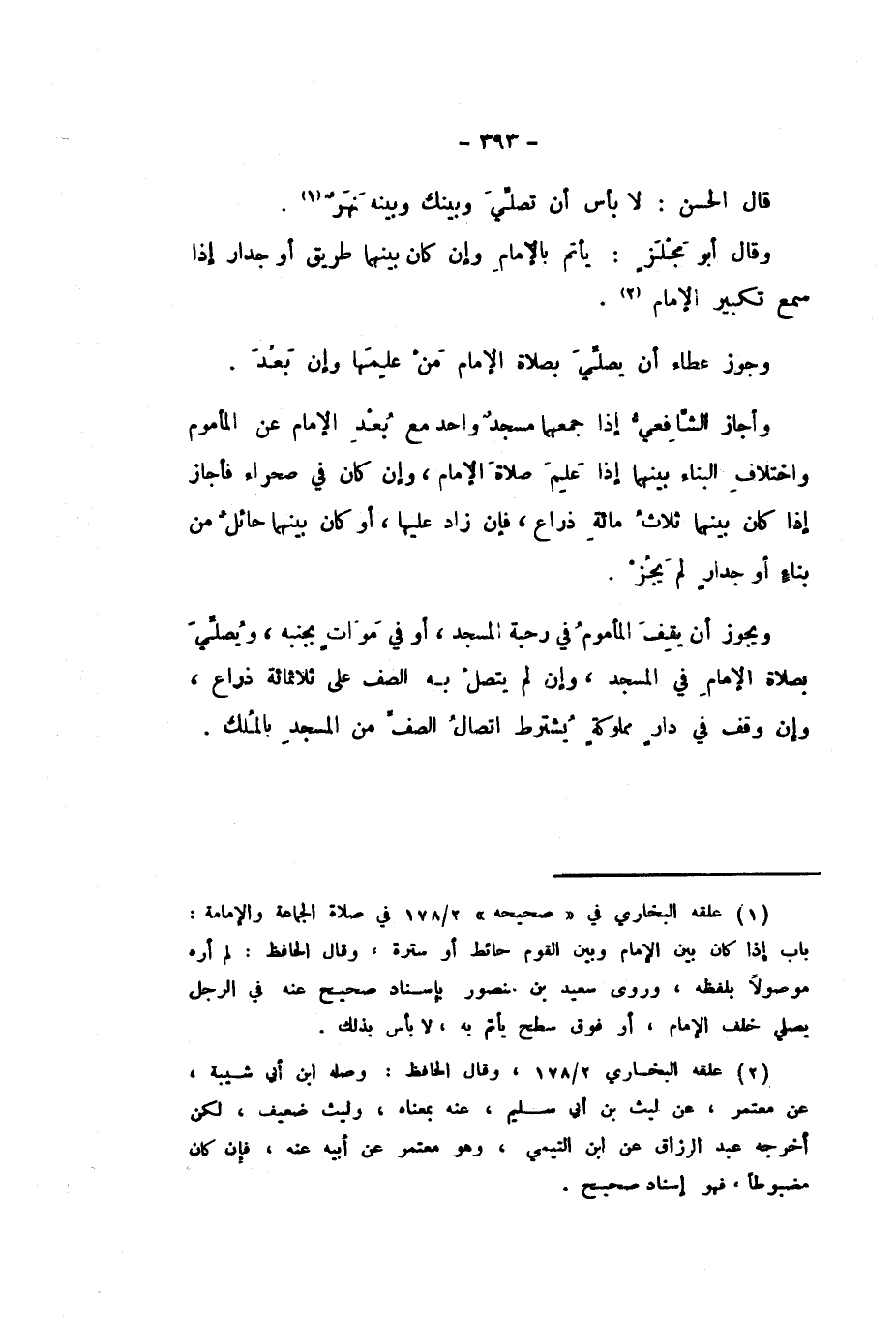 قَالَ الْحَسَنُ: لَا بَأْسَ أَنْ تُصَلِّيَ وَبَيْنَكَ وَبَيْنَهُ نَهْرٌ.