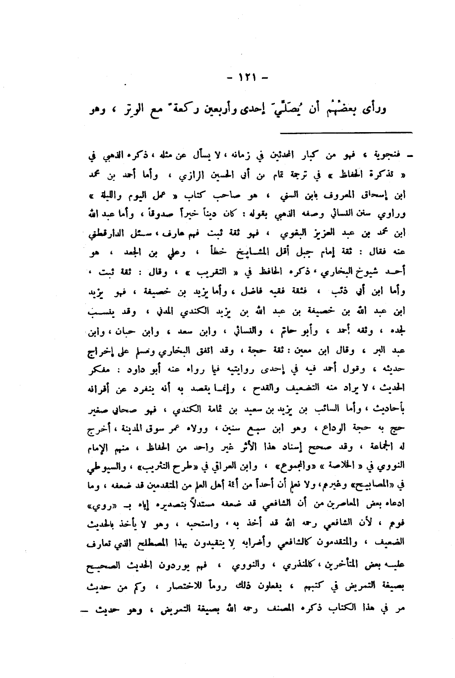 وَرَأَى بَعْضُهُمْ أَنْ يُصَلِّيَ إِحْدَى وَأَرْبَعِينَ رَكْعَةً مَعَ الْوِتْرِ، وَهُوَ