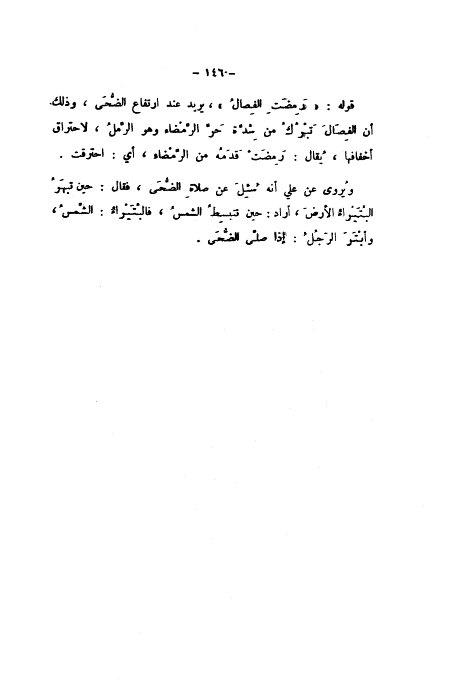 وَيُرْوَى عَنْ عَلِيٍّ، أَنَّهُ سُئِلَ عَنْ صَلاةِ الضُّحَى، فَقَالَ: حِينَ تَبْهَرُ الْبُتَيْرَاءُ الأَرْضَ، أَرَادَ: حِينَ تَنْبَسِطُ الشَّمْسُ، فَالْبُتَيْرَاءُ: الشَّمْسُ وَأَبْتَرَ الرَّجُلُ: إِذَا صَلَّى الضُّحَى
