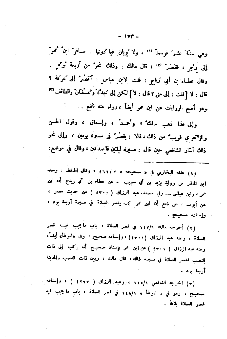 وَقَالَ عَطَاءُ بْنُ أَبِي رَبَاحٍ: قُلْتُ لابْنِ عَبَّاسٍ: أَقْصُرُ إِلَى عَرَفَةَ؟ قَالَ: لَا، قُلْتُ: إِلَى مِنًى؟ قَالَ: لَا، لَكِنْ إِلَى جُدَّةَ، وَعُسْفَانَ وَالطَّائِفِ، وَهُوَ أَصَحُّ الرِّوَايَاتِ، عَنِ ابْنِ عُمَرَ أَيْضًا، رَوَاهُ عَنْهُ نَافِعٌ.