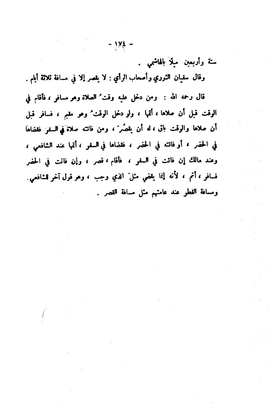 وَقَالَ سُفْيَانُ الثَّوْرِيُّ، وَأَصْحَابُ الرَّأْيِ لَا يَقْصُرُ إِلا فِي مَسَافَةِ ثَلاثَةِ أَيَّامٍ.