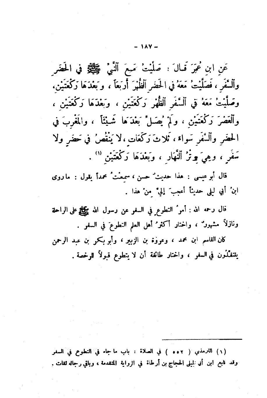 قَالَ رَحِمَهُ اللَّهُ: أَمْرُ التَّطَوُّعِ فِي السَّفَرِ، عَنْ رَسُولِ اللَّهِ صَلَّى اللهُ عَلَيْهِ وَسَلَّمَ عَلَى الرَّاحِلَةِ وَنَازِلا، مَشْهُورٌ، وَاخْتَارَ أَكْثَرُ أَهْلِ الْعِلْمِ التَّطَوُّعَ فِي السَّفَرِ.