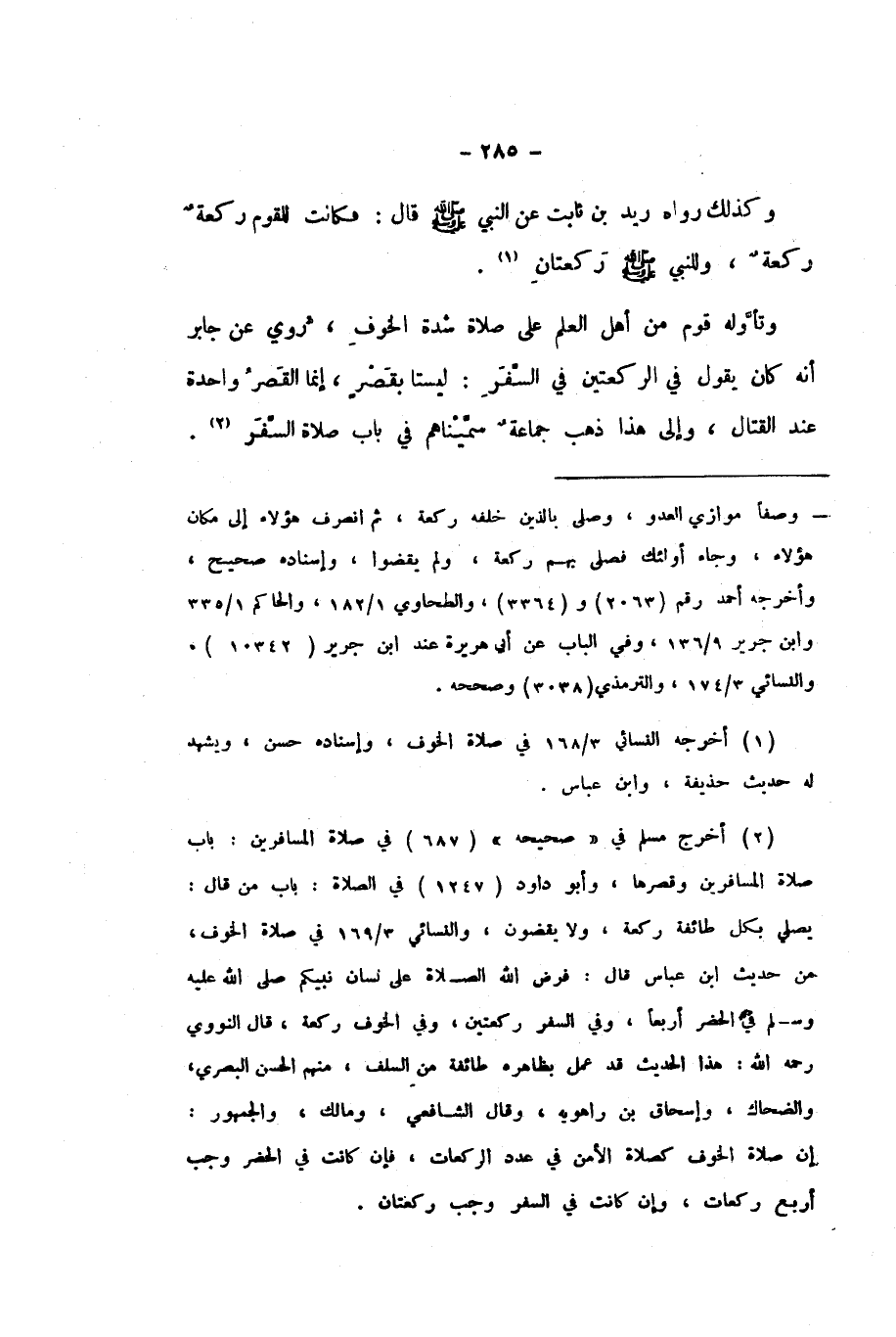وَتَأَوَّلَهُ قَوْمٌ مِنْ أَهْلِ الْعِلْمِ، عَلَى صَلاةِ شِدَّةِ الْخَوْفِ، رُوِيَ عَنْ جَابِرٍ، أَنَّهُ كَانَ يَقُولُ فِي الرَّكْعَتَيْنِ فِي السَّفَرِ: لَيْسَتَا بِقَصْرٍ، إِنَّمَا الْقَصْرُ وَاحِدَةٌ عِنْدَ الْقِتَالِ، وَإِلَى هَذَا ذَهَبَ جَمَاعَةٌ سَمَّيْنَاهُمْ فِي بَابِ صَلاةِ السَّفَرِ.