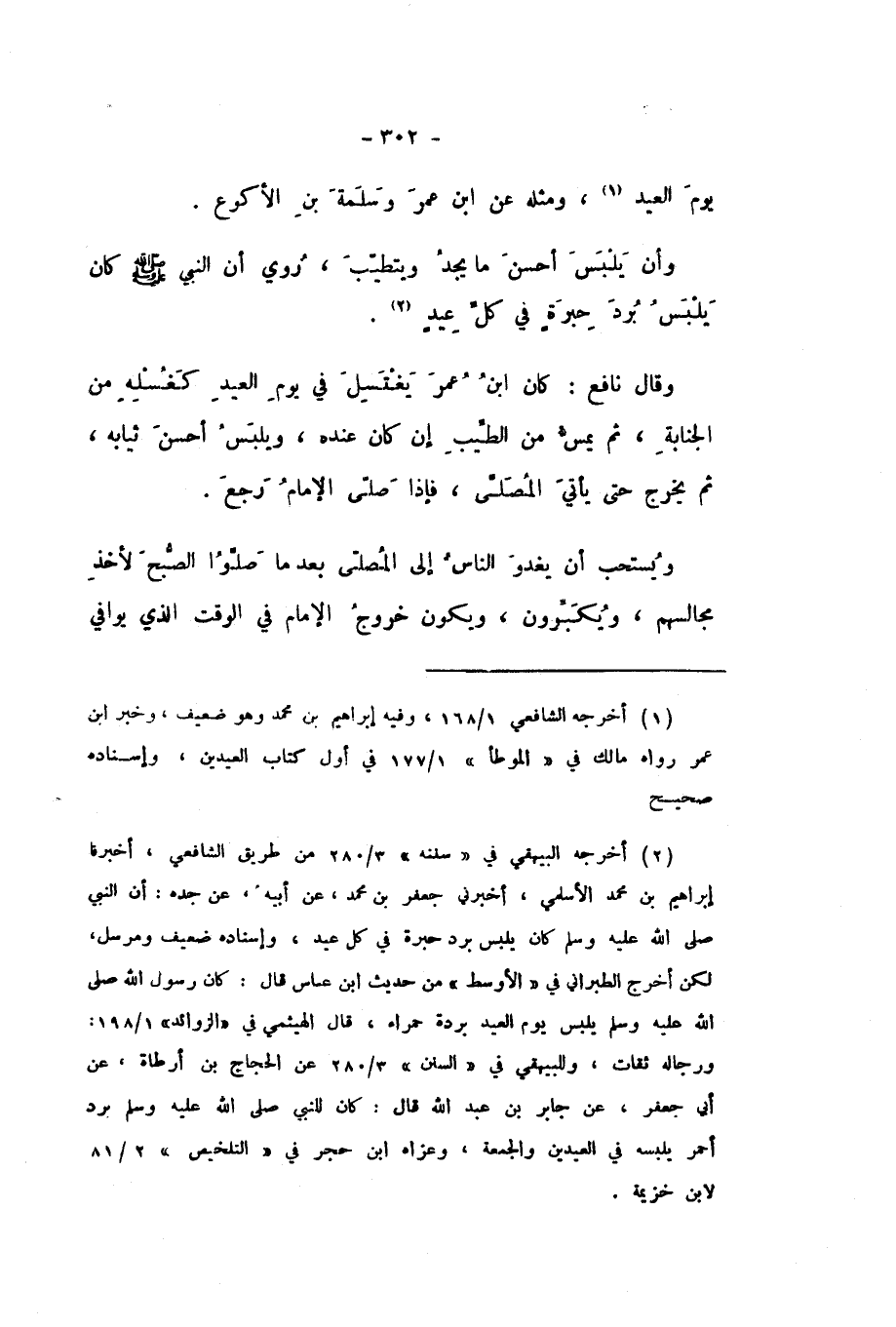 يَوْمَ الْعِيدِ، وَمِثْلَهُ عَنِ ابْنِ عُمَرَ، وَسَلَمَةَ بْنِ الأَكْوَعِ.