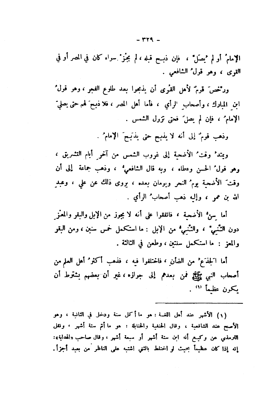 وَرَخَّصَ قَوْمٌ لأَهْلِ الْقُرَى أَنْ يَذْبَحُوا بَعْدَ طُلُوعِ الْفَجْرِ، وَهُوَ قَوْلُ ابْنِ الْمُبَارَكِ، وَأَصْحَابِ الرَّأْيِ، فَأَمَّا أَهْلُ الْمِصْرِ، فَلا ذَبْحَ لَهُمْ حَتَّى يُصَلِّيَ الإِمَامُ، فَإِنْ لَمْ يُصَلِّ، فَحَتَّى تَزُولَ الشَّمْسُ.