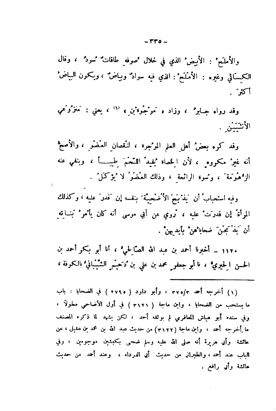 وَفِيهِ اسْتِحْبَابُ أَنْ يَذْبَحَ الأُضْحِيَّةَ بِنَفْسِهِ إِنْ قَدَرَ عَلَيْهِ، وَكَذَلِكَ الْمَرْأَةُ، إِنْ قَدَرَتْ عَلَيْهِ، رُوِيَ عَنْ أَبِي مُوسَى أَنَّهُ «كَانَ يَأْمُرُ بَنَاتَهُ أَنْ يَذْبَحْنَ ضَحَايَاهُنَّ بِأَيْدِيهِنَّ»