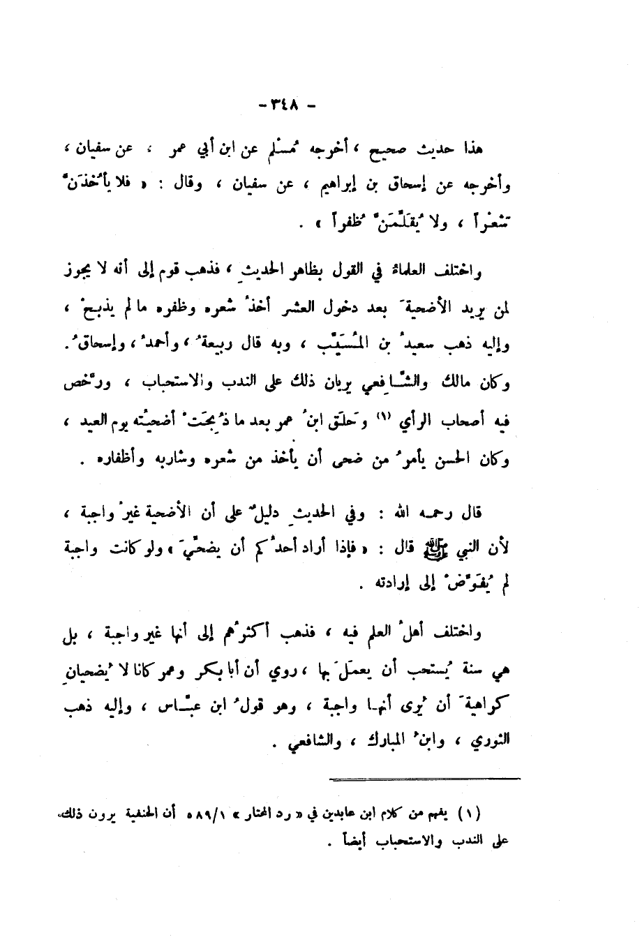 قَالَ رَحِمَهُ اللَّهُ: وَفِي الْحَدِيثِ دَلِيلٌ عَلَى أَنَّ الأُضْحِيَّةَ غَيْرُ وَاجِبَةٍ، لأَنَّ النَّبِيَّ صَلَّى اللهُ عَلَيْهِ وَسَلَّمَ، قَالَ: «فَإِذَا أَرَادَ أَحَدُكُمْ أَنْ يُضَحِّيَ» وَلَوْ كَانَتْ وَاجِبَةً لَمْ يُفَوَّضْ إِلَى إِرَادَتِهِ.