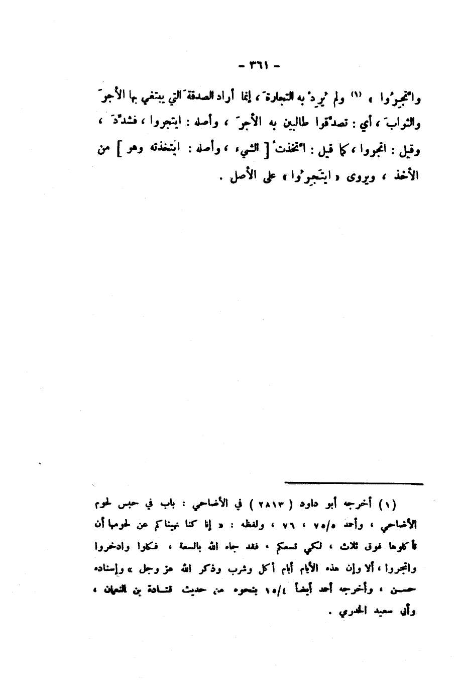 وَاتَّجِرُوا» وَلَمْ يُرِدْ بِهِ التِّجَارَةَ، إِنَّمَا أَرَادَ الصَّدَقَةَ الَّتِي يَبْتَغِي بِهَا الأَجْرَ وَالثَّوَابَ، أَيْ: تَصَدَّقُوا طَالِبِينَ بِهِ الأَجْرَ، وَأَصْلُهُ: ايْتَجِرُوا، فَشُدِّدَ، وَقيِلَ: اتَّجِرُوا، كَمَا قِيلَ: اتَّخَذْتُ الشَّيْءَ، وَأَصْلُهُ: ايْتَخَذْتُهُ وَهُوَ مِنَ الأَخْذِ، وَيُرْوَى «ايْتَجِرُوا» عَلَى الأَصْلِ