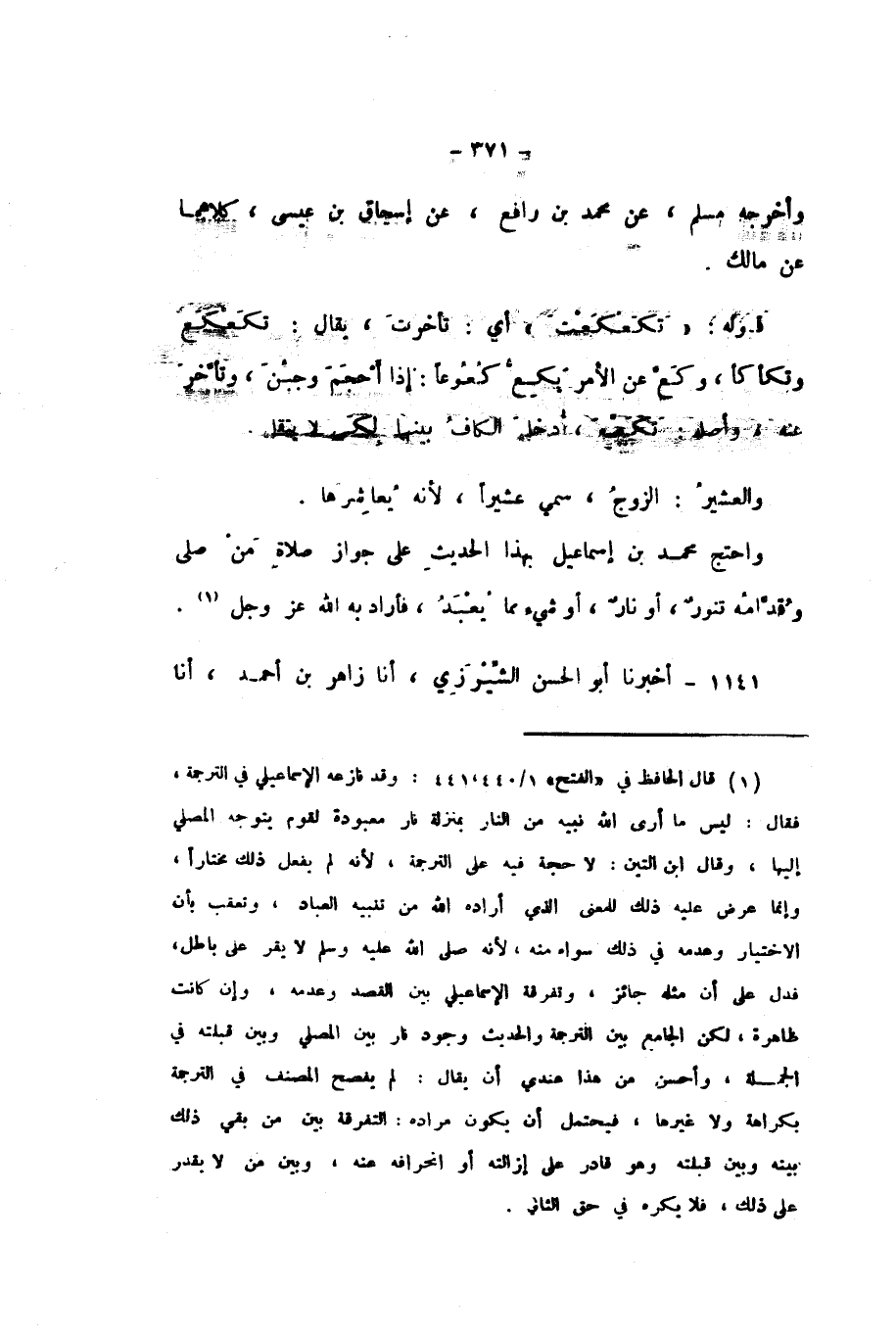 1141 - أَخْبَرَنَا أَبُو الْحَسَنِ الشِّيرَزِيُّ، أَنا زَاهِرُ بْنُ أَحْمَدَ، أَنا